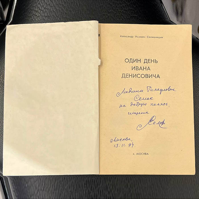 Подарочная книга с рукописным пожеланием и автографом Александра Солженицына