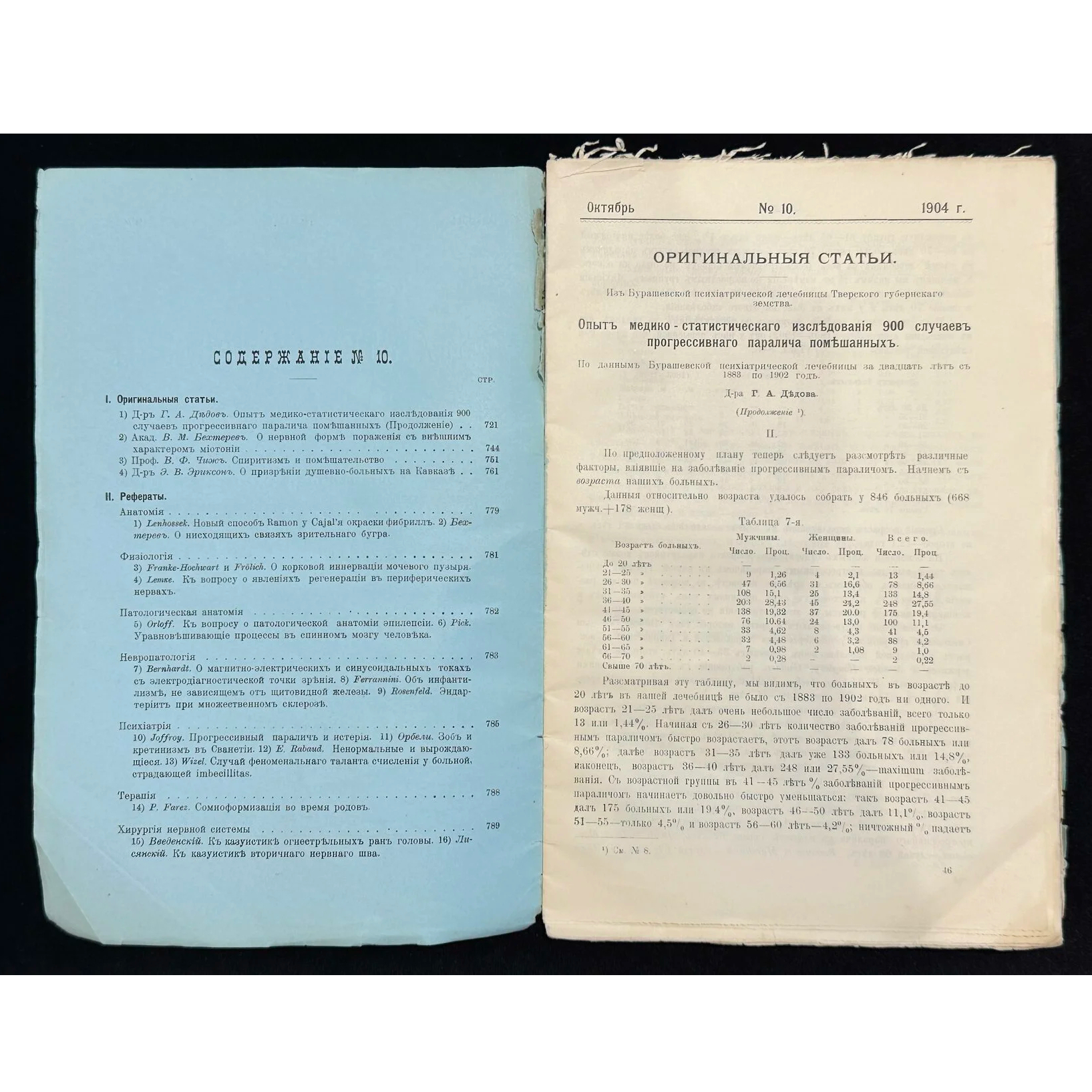 Журнал «Обозрение психиатрии, неврологии и экспериментальной психологии» № 10, Санкт-Петербург, изд. К. Л. Риккера, 1904 год