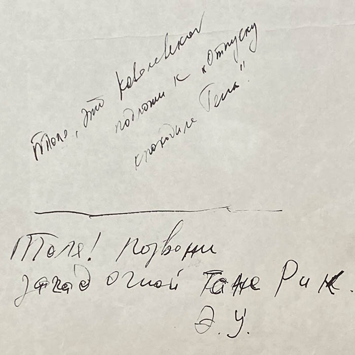 Документ с рукописным обращением писателя Эдуарда Успенского