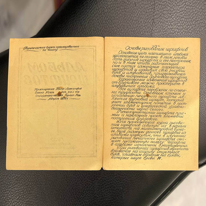Книга "Альбом шрифтов". Васильев А., Красноярск, авторское издание, 1932 год.