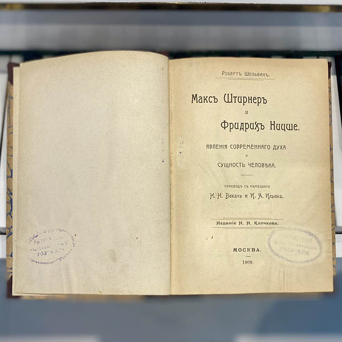 Книга «Макс Штирнер и Фридрих Ницше: явления современного духа». Шельвин Р., Москва, Издание Н.Н. Клочкова, 1909 год
