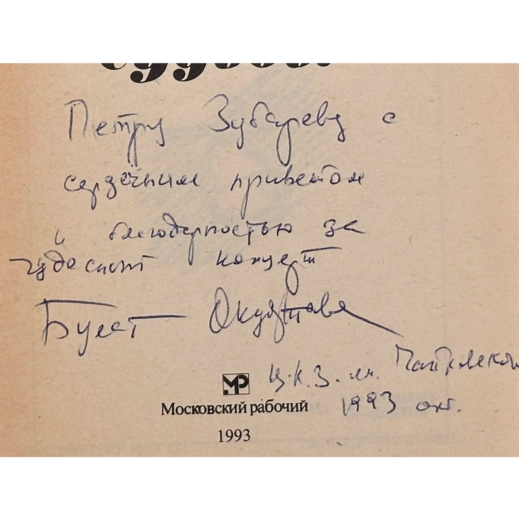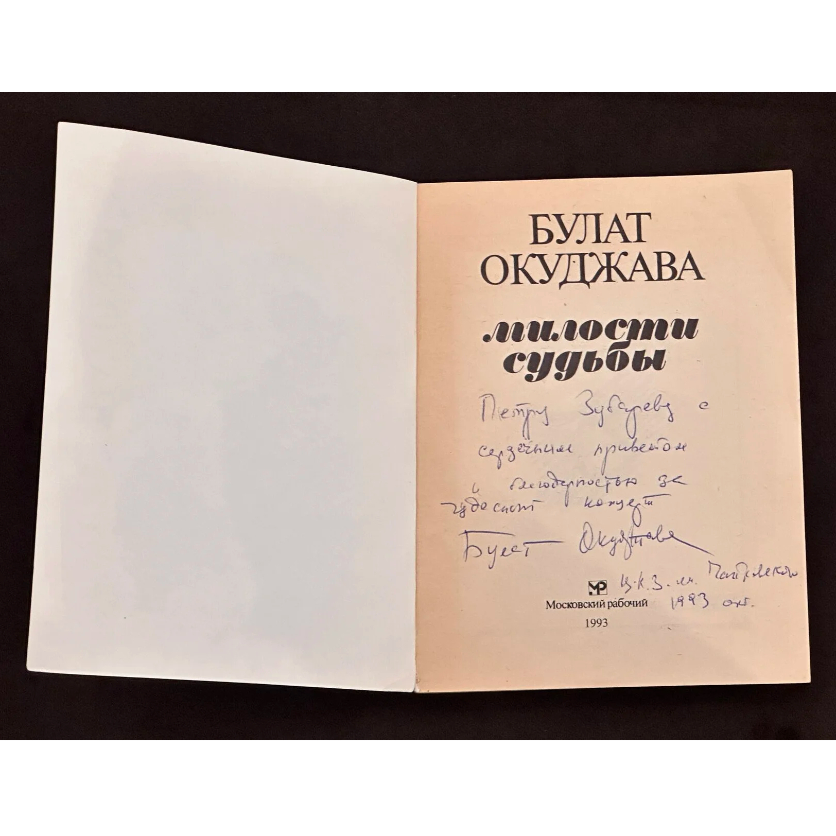 Книга «Милости судьбы» с автографом и дарственной надписью поэта и сценариста Булата Окуджава