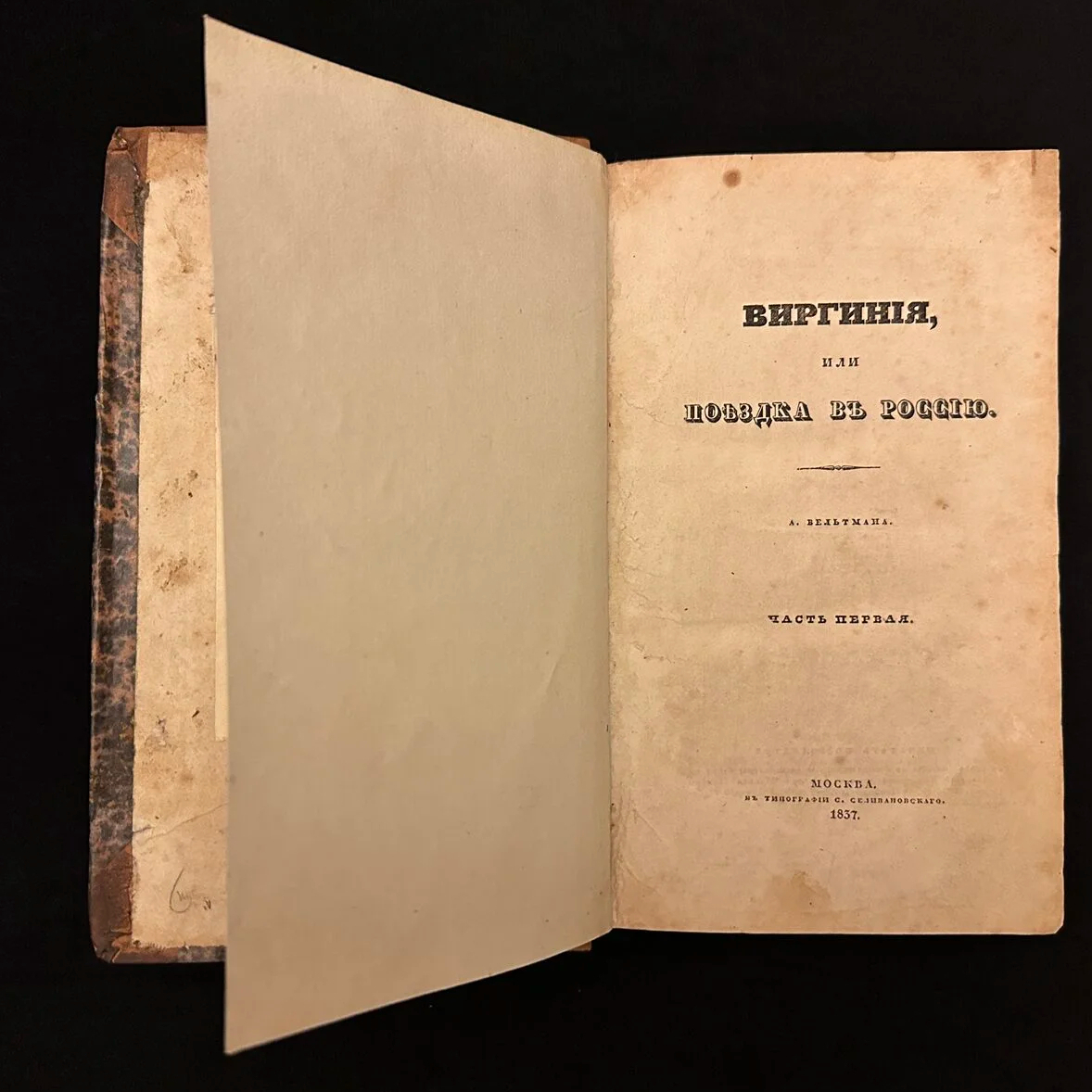 Книга "Виргиния, или Поездка в Россию" в 2 ч. Вельтман А.Ф., Москва, Типография С. Селивановского, 1837 год.