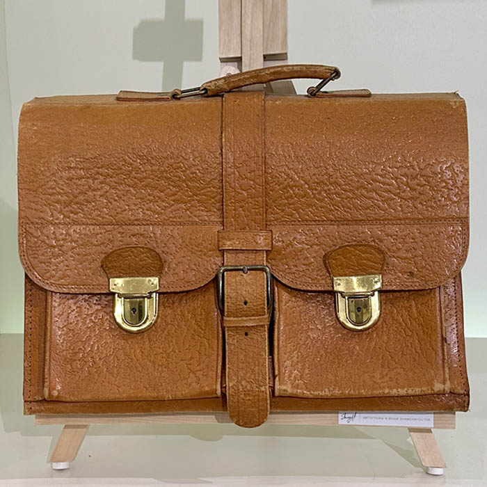 Портфель, подаренный на 60-летие родителями жены (Ларисы Алексеевны Жадовой) — Алексеем Семёновичем Жадовым (советский военачальник, командующий армиями в годы Великой Отечественной войны, первый заместитель главнокомандующего Сухопутными войсками, генерал армии) с супругой.