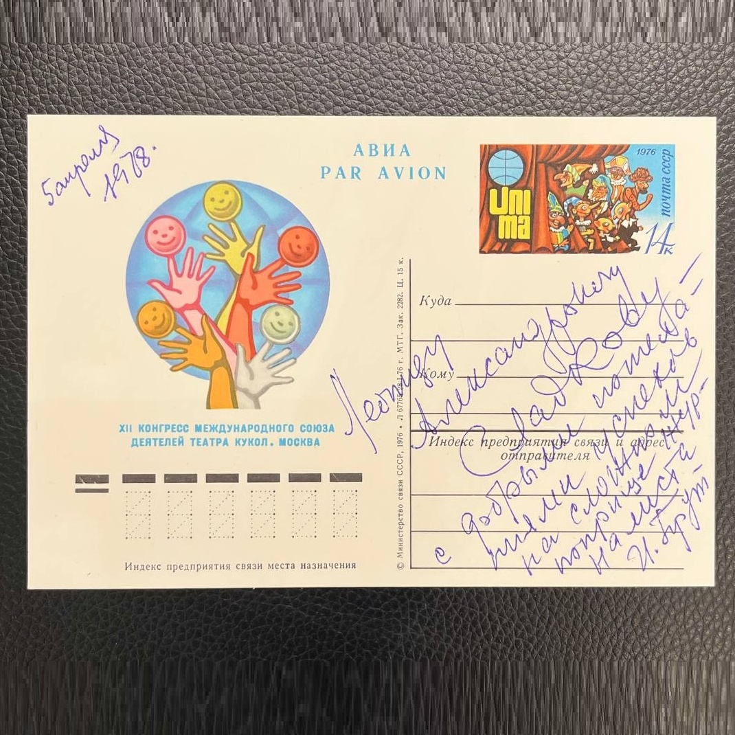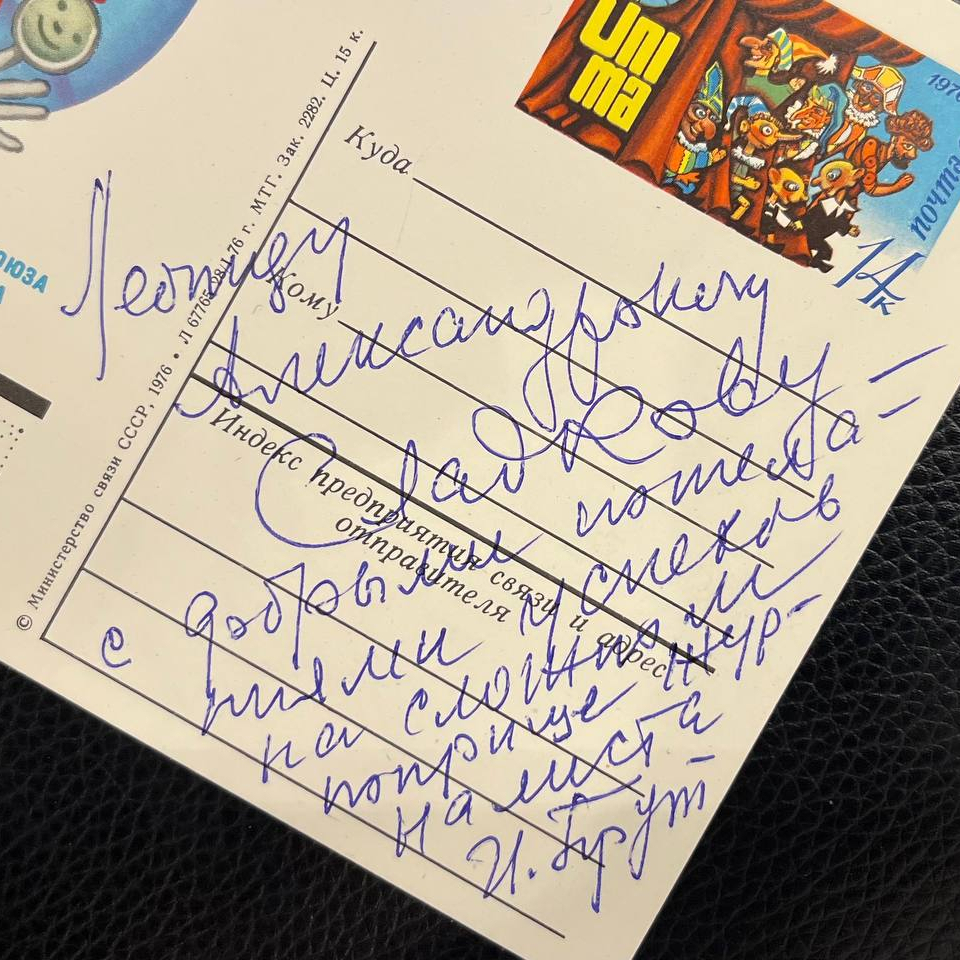 Открытка с собственноручным обращением и автографом сценариста Иосифа Прута