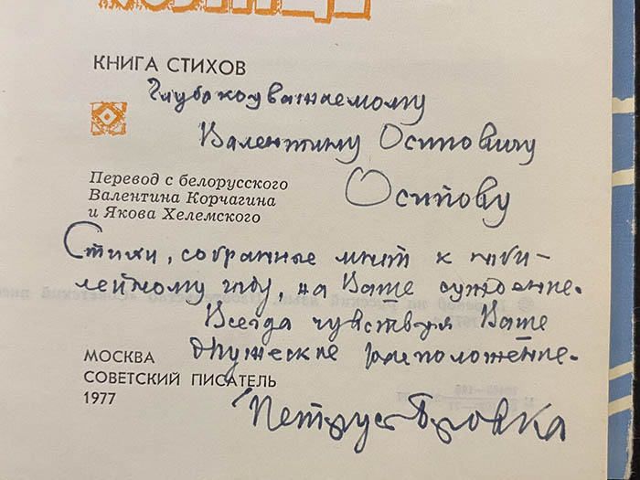 Петрусь Бровка книга стихов «Как поднимается солнце» с автографом и рукописным обращением 1977г.