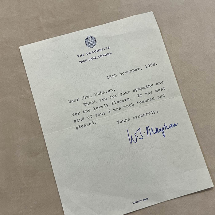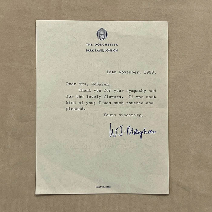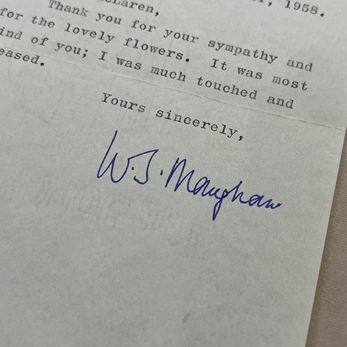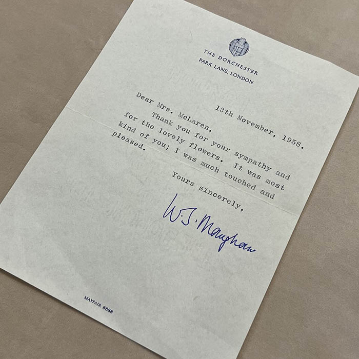 Письмо с автографом писателя Сомерсета Моэма