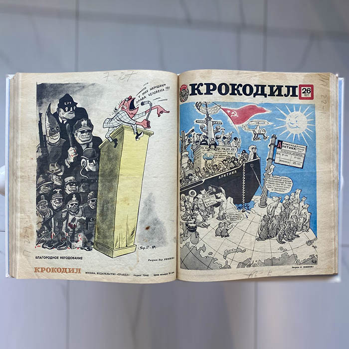 Журнал сатиры «Крокодил». Москва: издательство газеты «Правда», выпуски 1977 (№ 19-36). Полугодовая подшивка.