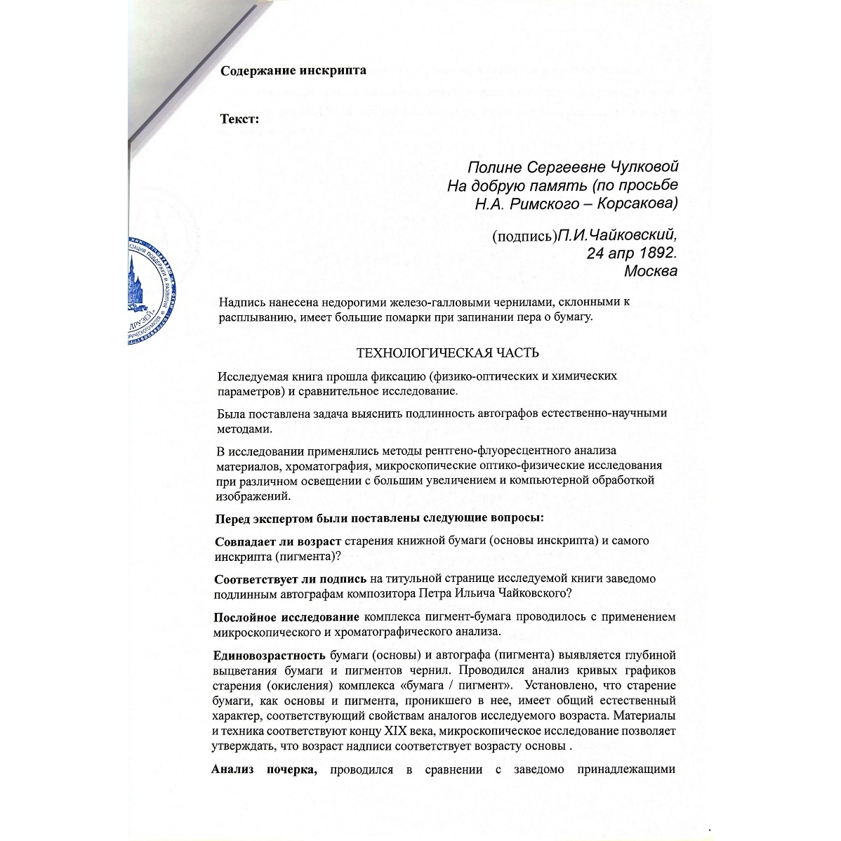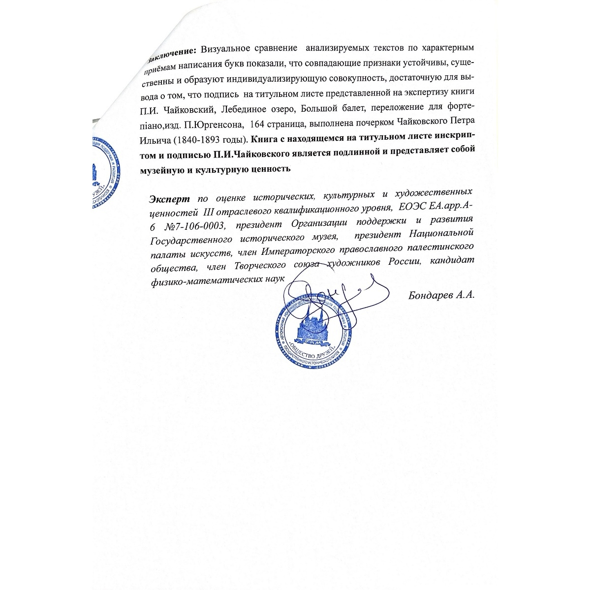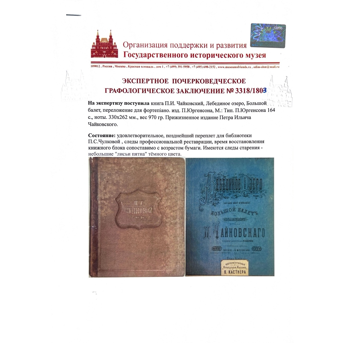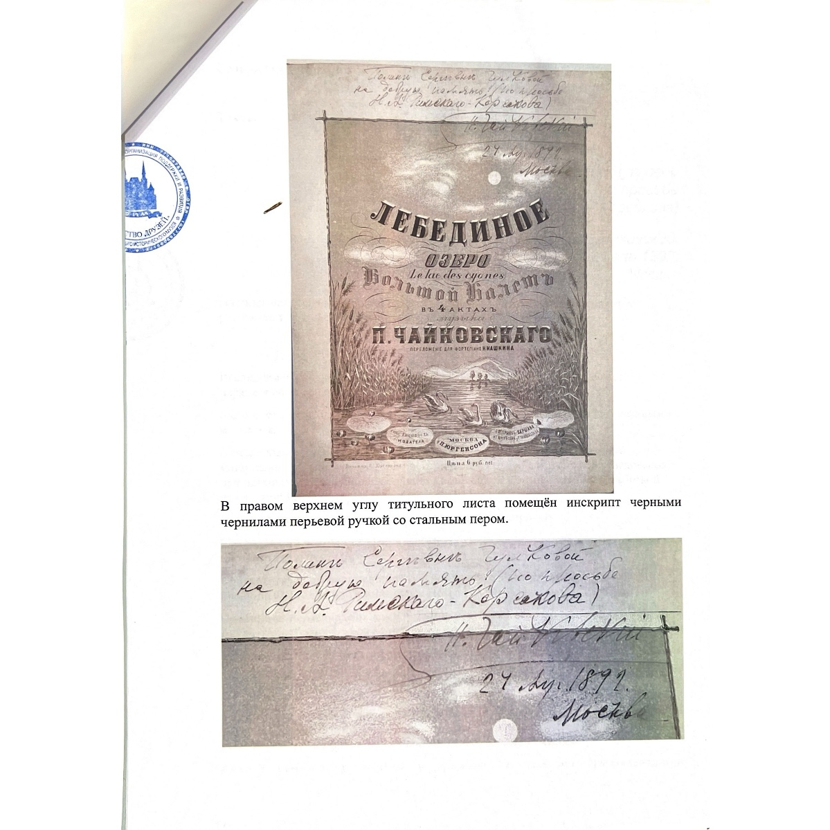 Ноты балета «Лебединое озеро» с дарственной надписью и автографом композитора Петра Чайковского