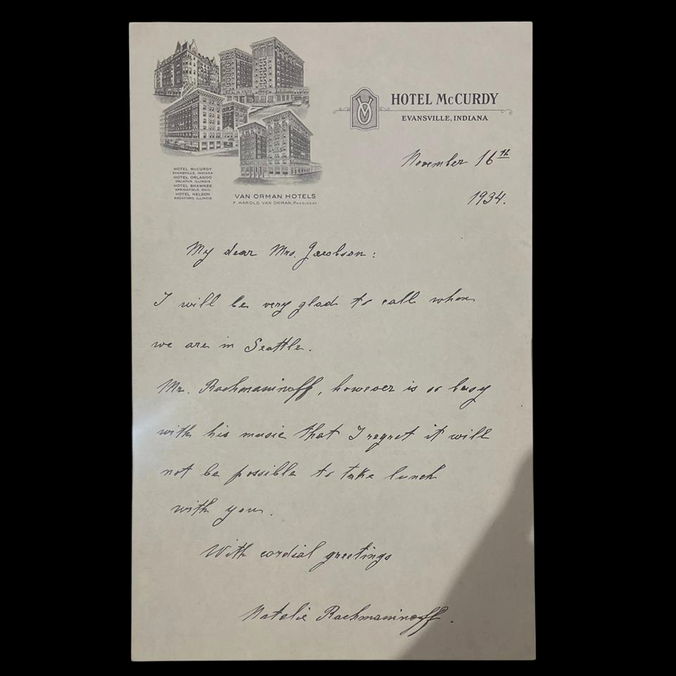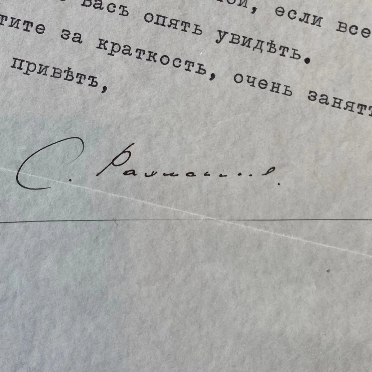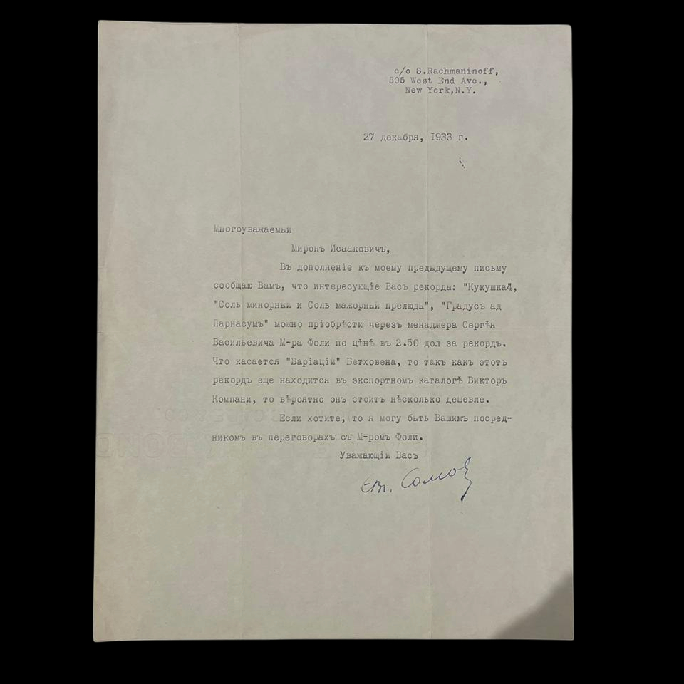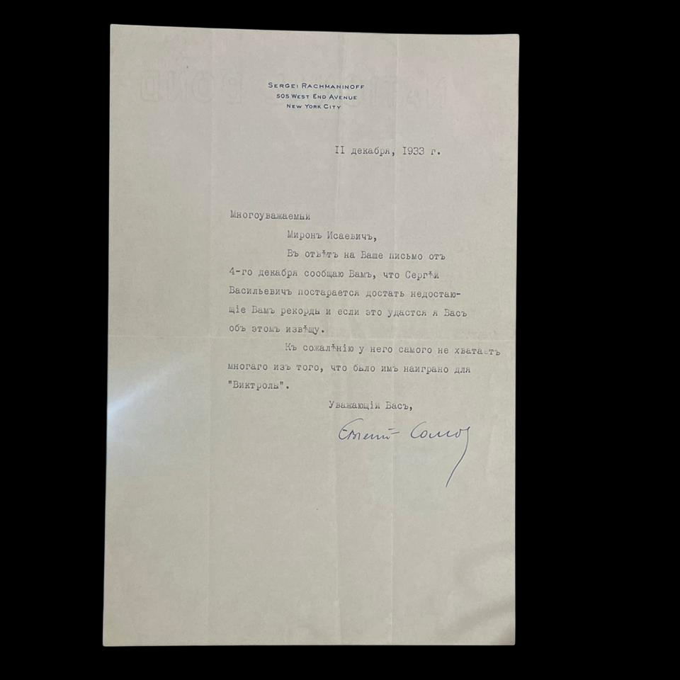 Письмо с автографом композитора Сергея Рахманинова