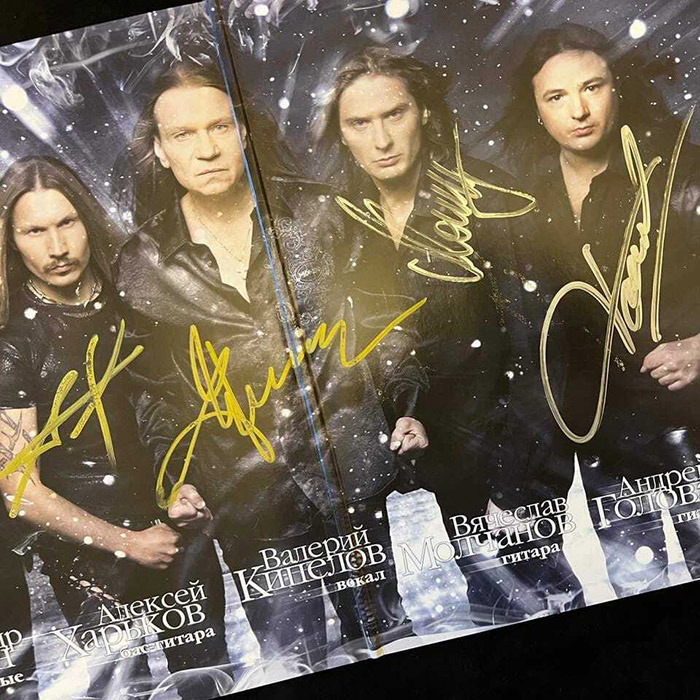 Пластинка с автографами. Валерий Кипелов, Алексей Харьков, Александр Минякин, Вячеслав Молчанов, Андрей Голованов, Маргарита Пушкина, Ария