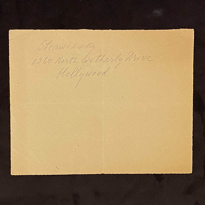 На записке рядом с автографом композитора также оставлен адрес его дома: 1260 North Wetherly Drive Hollywood.