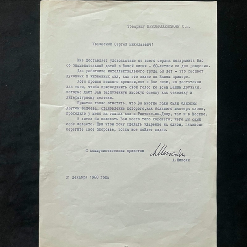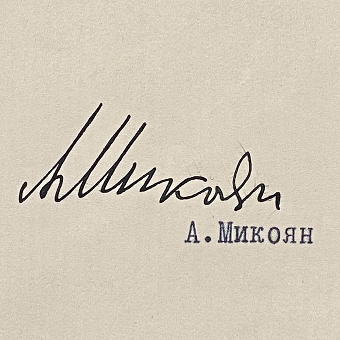 Документ с автографом Анастаса Микояна
