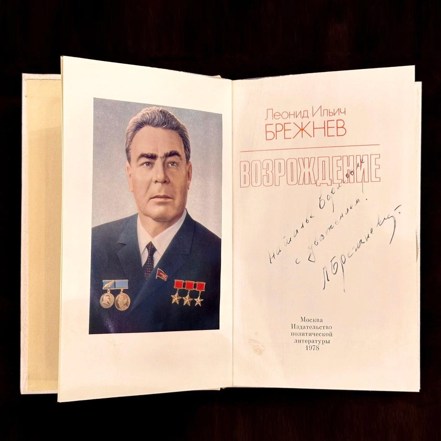 Книга «Возрождение» с автографом и рукописным обращением руководителя СССР Леонида Брежнева