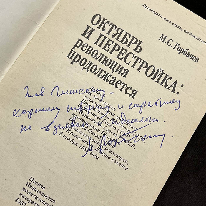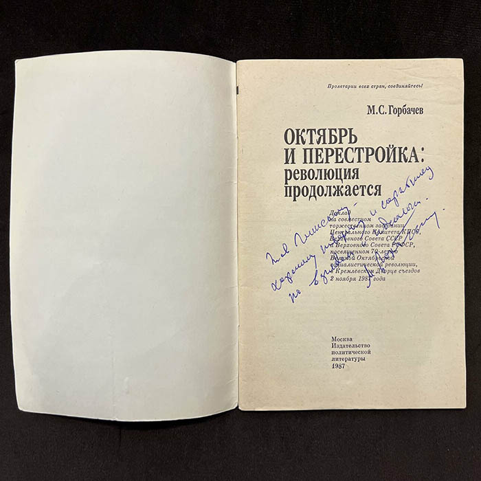 Михаил Горбачёв, книга «Октябрь и перестройка: революция продолжается» с рукописным обращением и автографом 1987г.