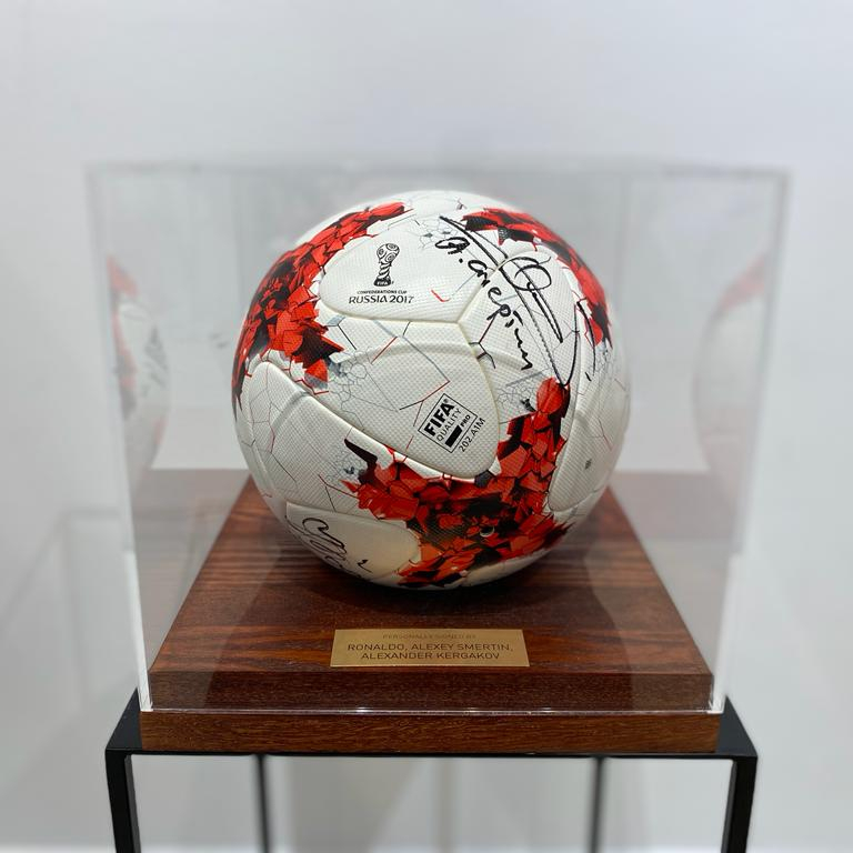 Футбольный мяч с автографами Роналдо, Алексея Смертина, Александра Кержакова, дерево