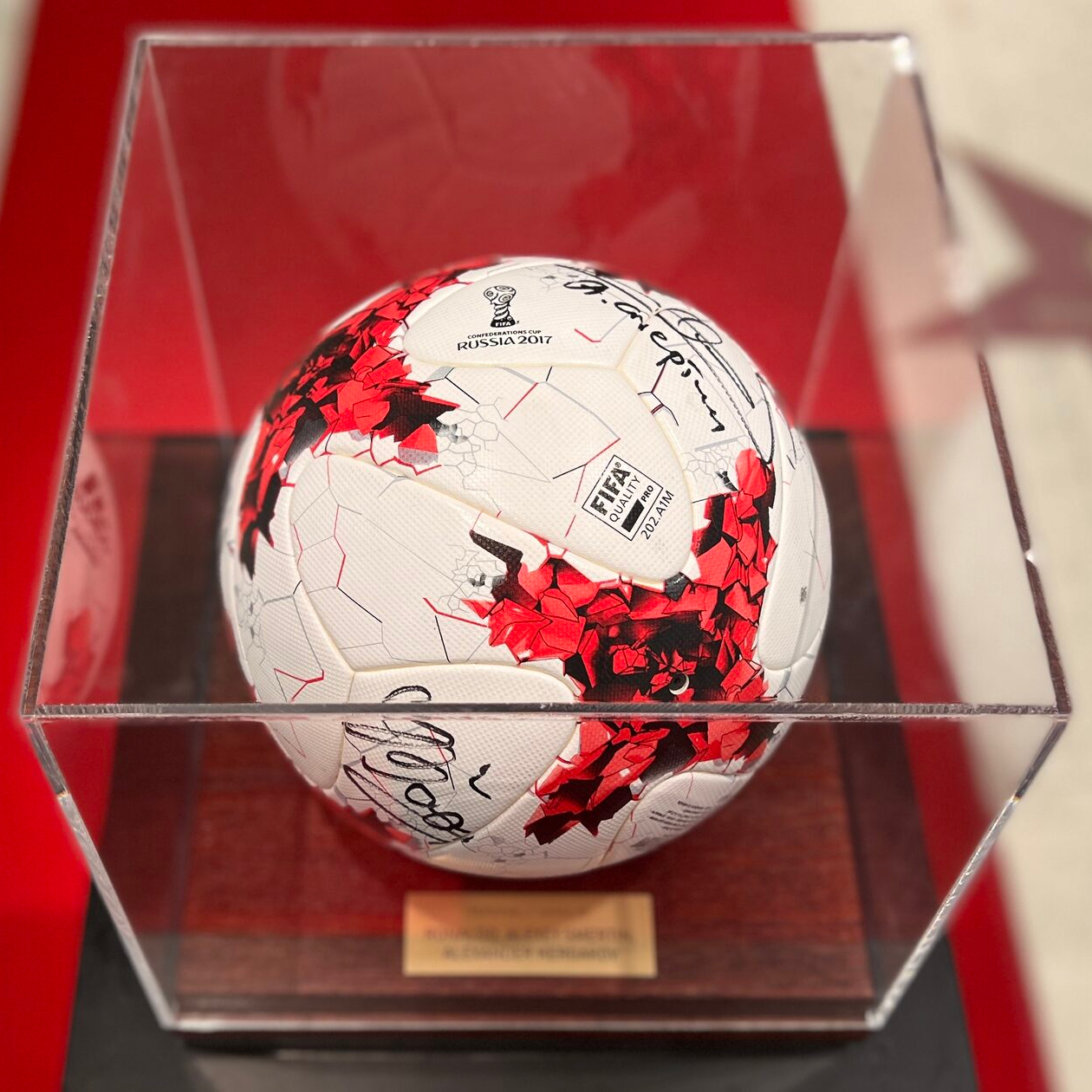 Футбольный мяч с автографом Роналдо, Алексея Смертина, Александра Кержакова, дерево