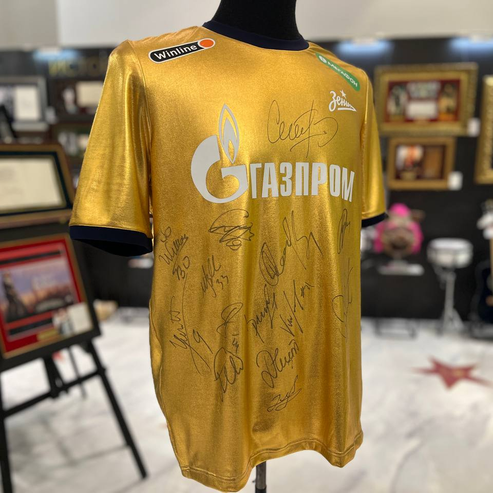 Футболка ФК «Зенит» с автографами Сергея Семака, Вильмара Барриоса, Ивана Сергеева, Дугласа Сантоса, Далера Кузяева и других