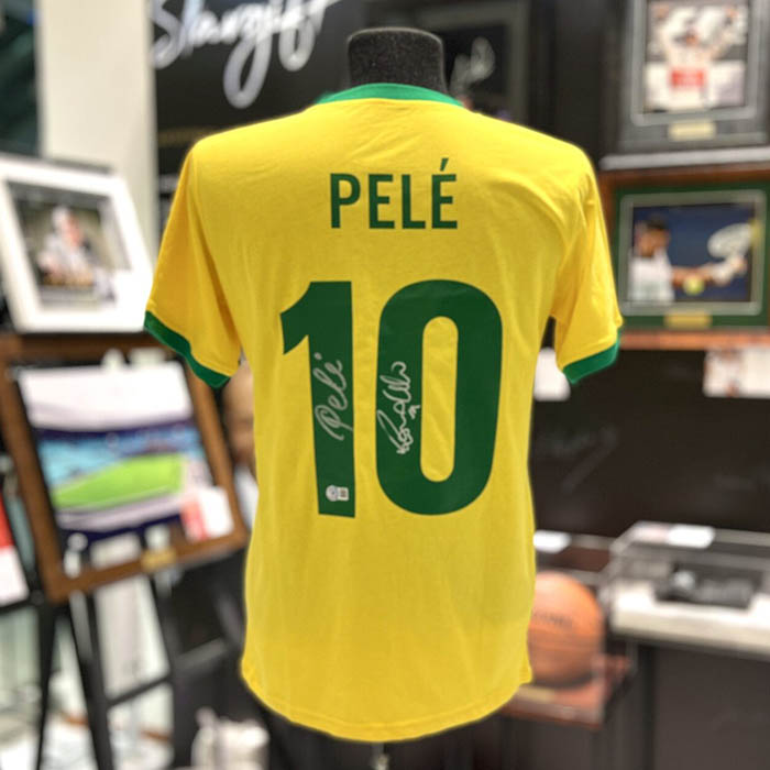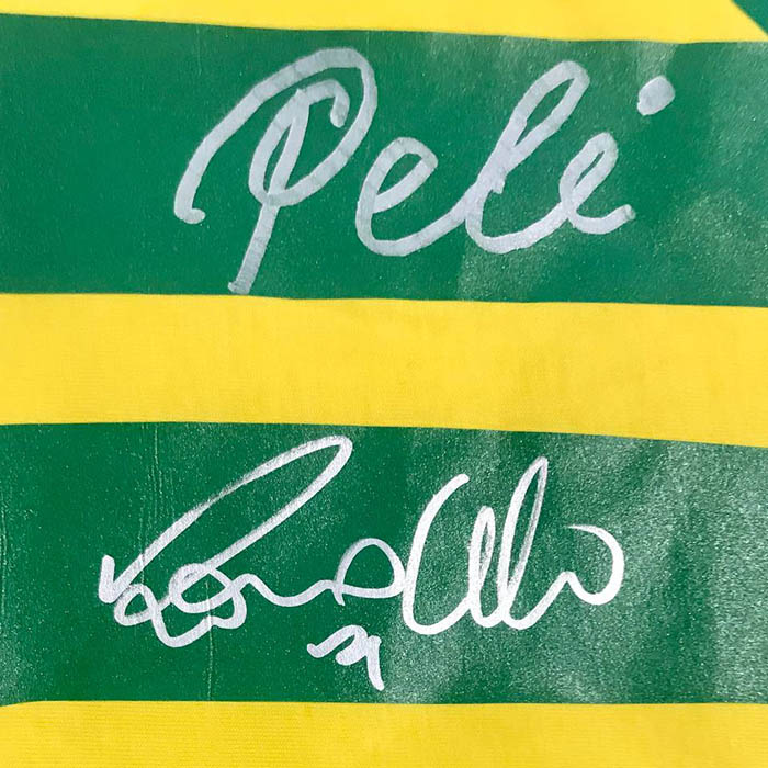 Футболка с 2-мя автографами Пеле и Роналдиньо