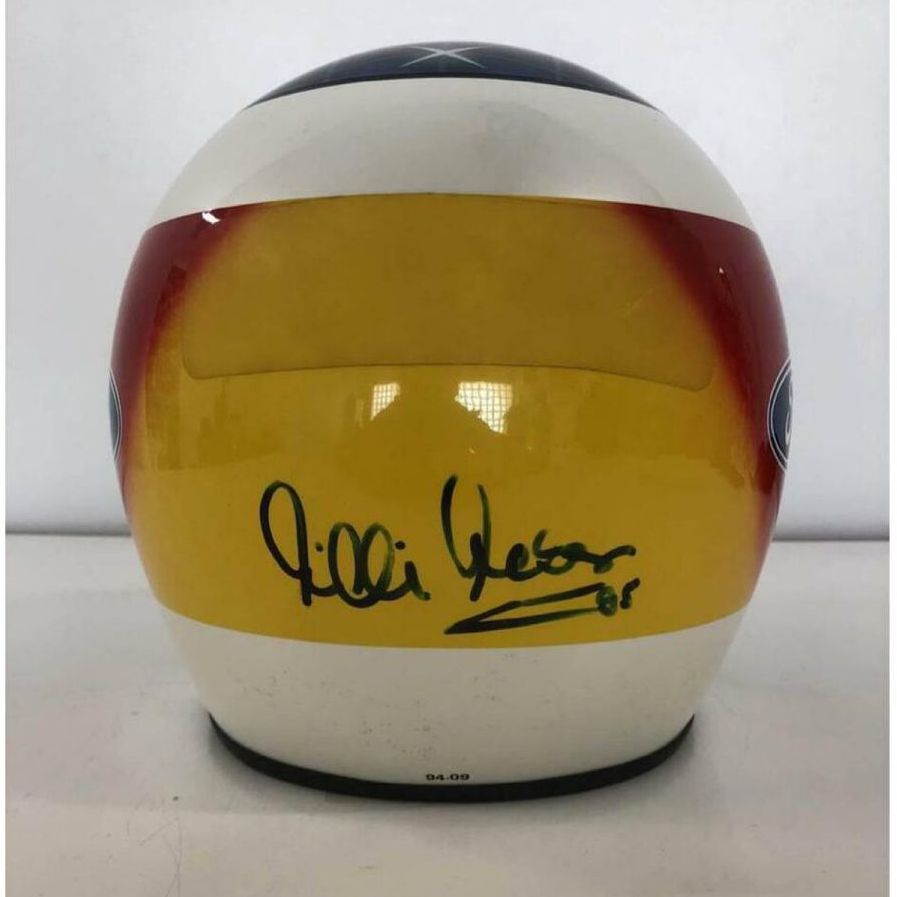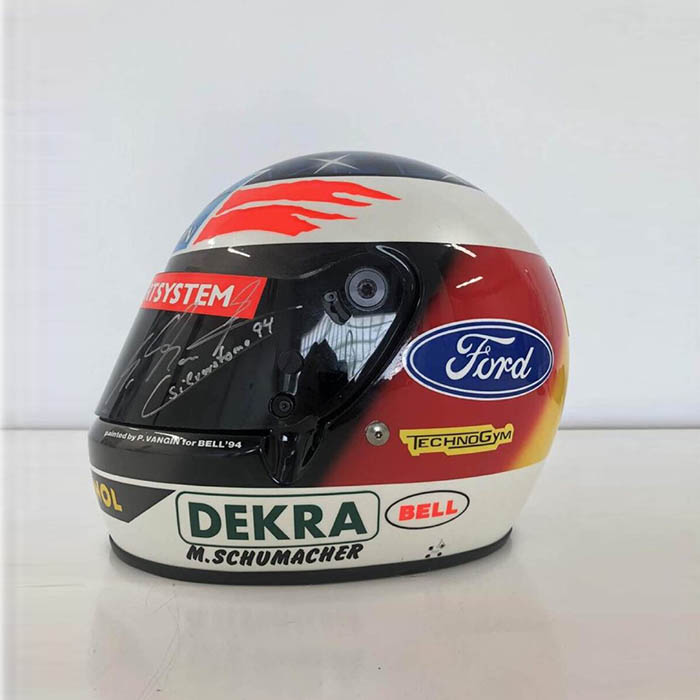 Шлем украшен автографом Михаэля Шумахера, а также подписью Вилли Вебера — легендарного менеджера, выведшего гонщика в мир величайших чемпионов. Вебер увидел в молодом Шумахере не только талант, но и безграничную жажду победы. Их сотрудничество стало одним из самых успешных альянсов в истории автоспорта, приведя Шумахера к вершинам, недосягаемым для большинства пилотов.