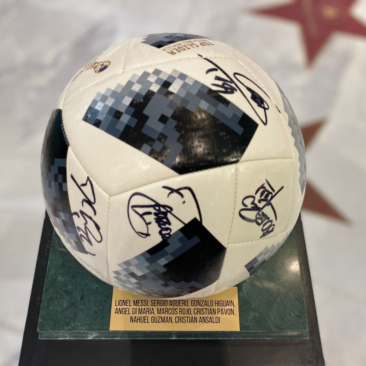 Футбольный мяч с автографами аргентинских футболистов, мрамор зеленый