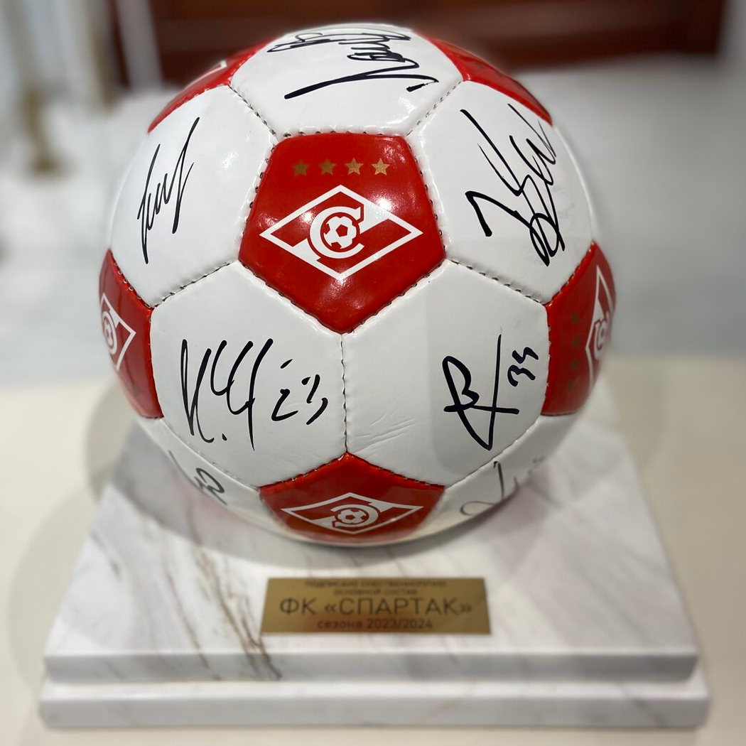 Футбольный мяч с автографом ФК "Спартак", мрамор белый