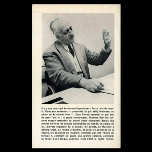 Энцо Феррари — конструктор, основатель автомобильной компании и гоночной команды «Феррари». Впервые в биографии Энцо Феррари его команда приняла участие в Формуле-1 в 1950 году. Уже в следующем году команда завоевала первенство на соревнованиях, а саму победу принес Хосс Фройлан Гонзалес.