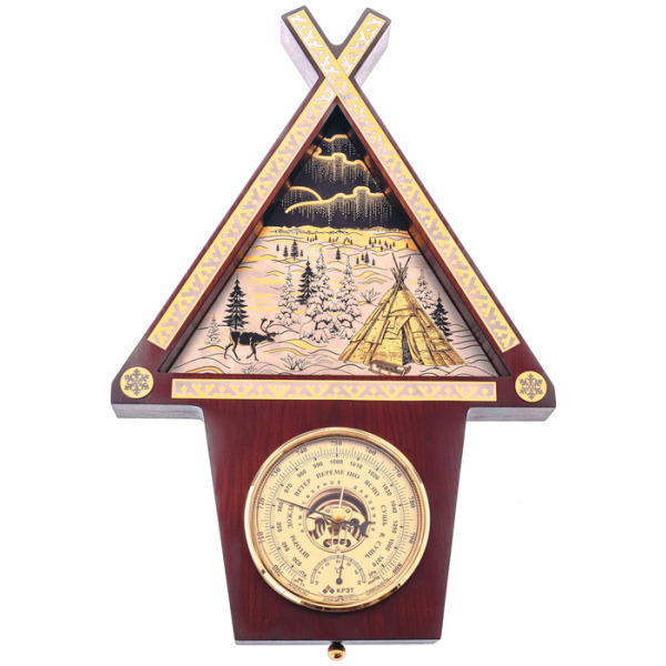 Барометр "Чум" ЗлатоустБарометр "Чум" ЗлатоустБарометры и компасы дарят не только путешественникам и метеорологам. Роскошные интерьерные аксессуары, декорированные в технике Златоуста, гармонично впишутся в интерьер дома или офиса.
