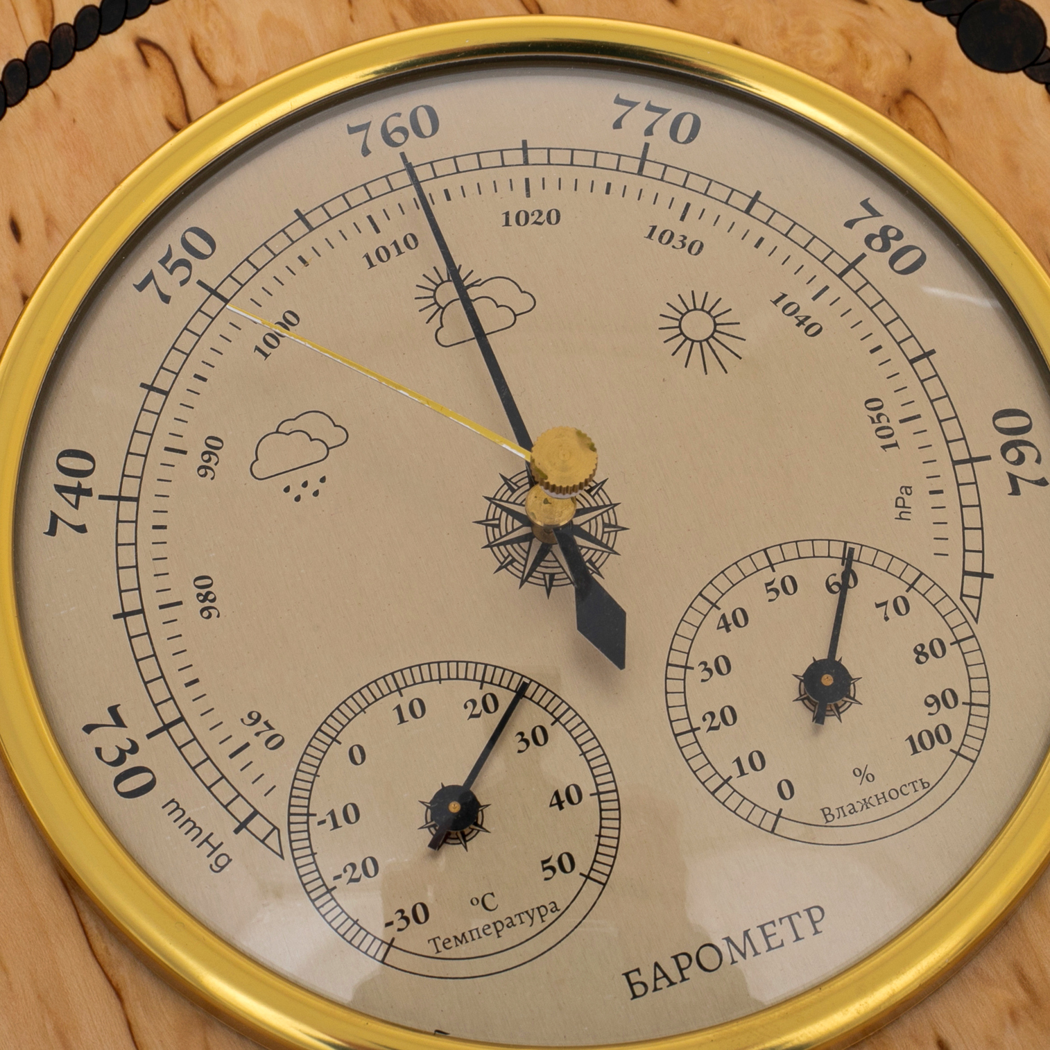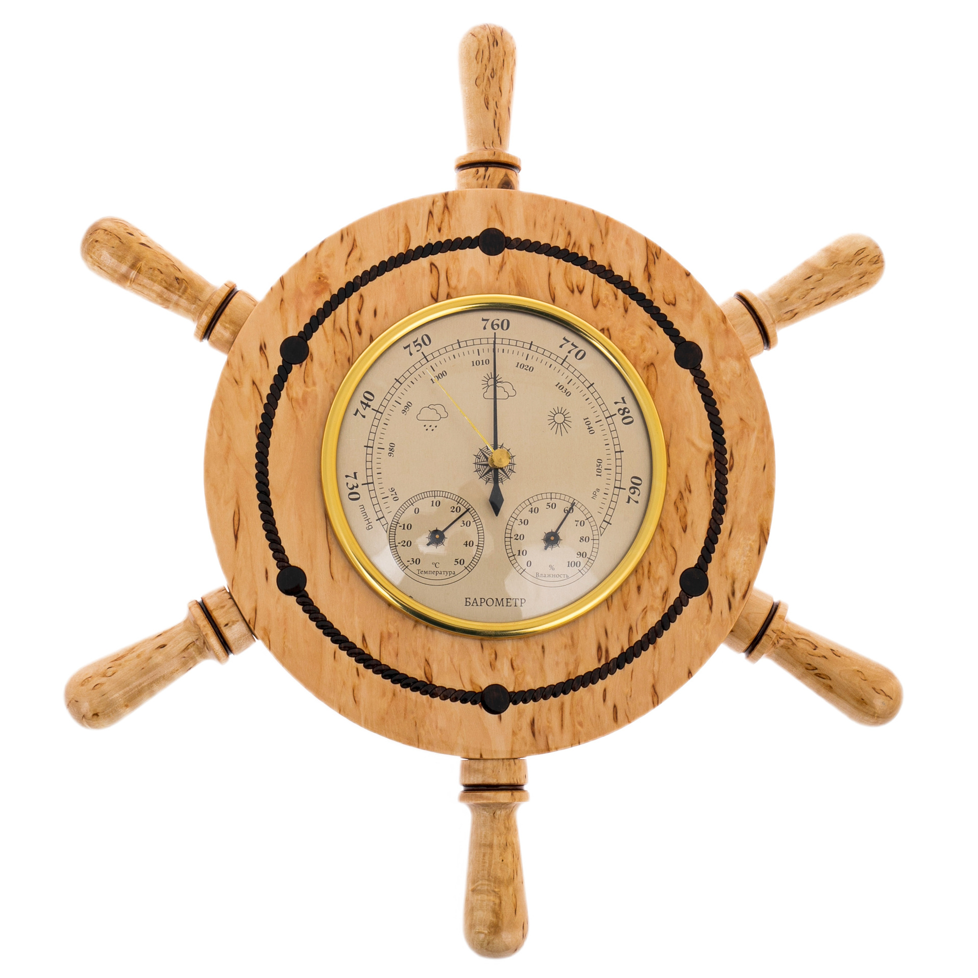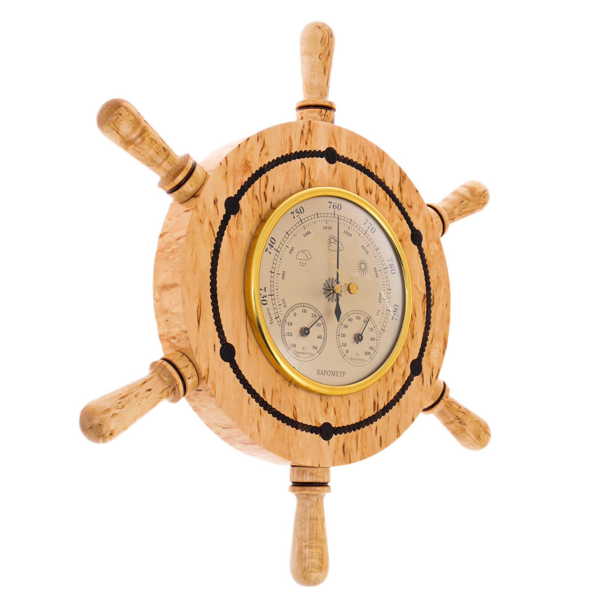 Барометр из карельской березы "Штурвал"