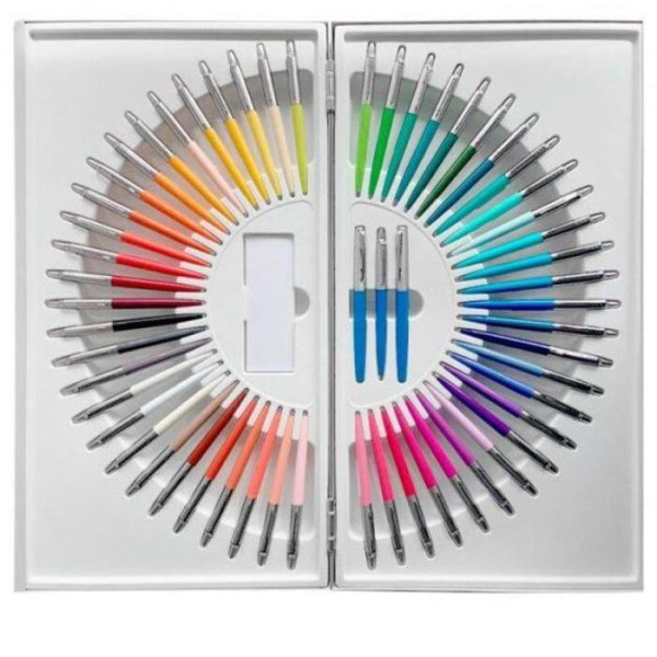 Оригинальный эксклюзивный кейс-портфель Parker Jotter с 54-ю ручками разных цветов Jotter. Включает в себя: 54 оригинальные ручки Jotter, представляющие весь спектр уникальных цветов Jotter Originals.