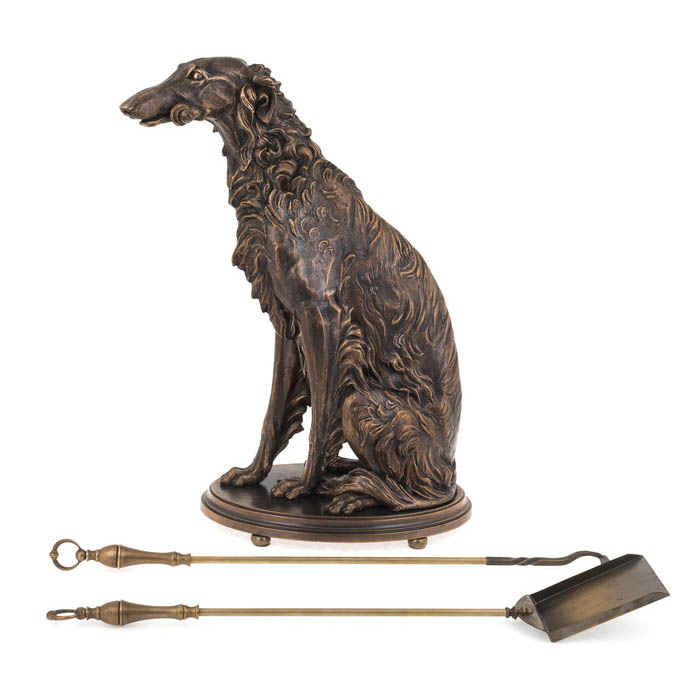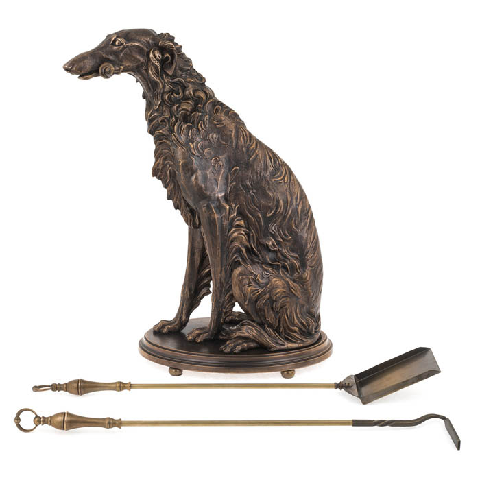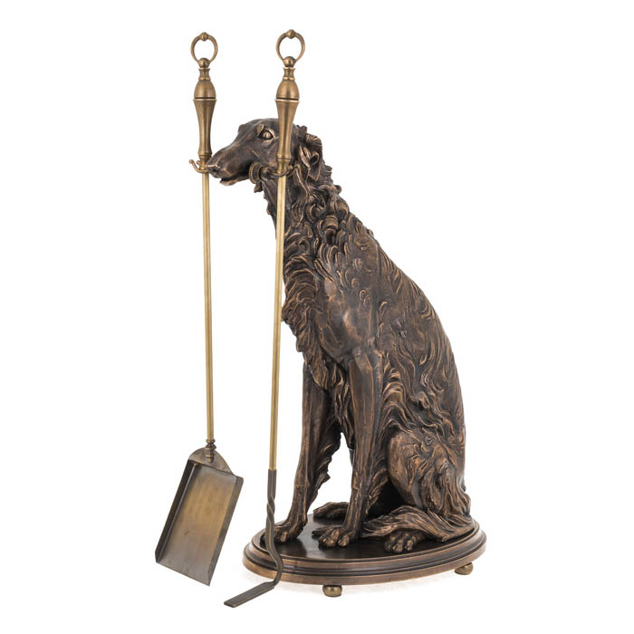 Авторский держатель каминных инструментов из бронзы "Борзая"