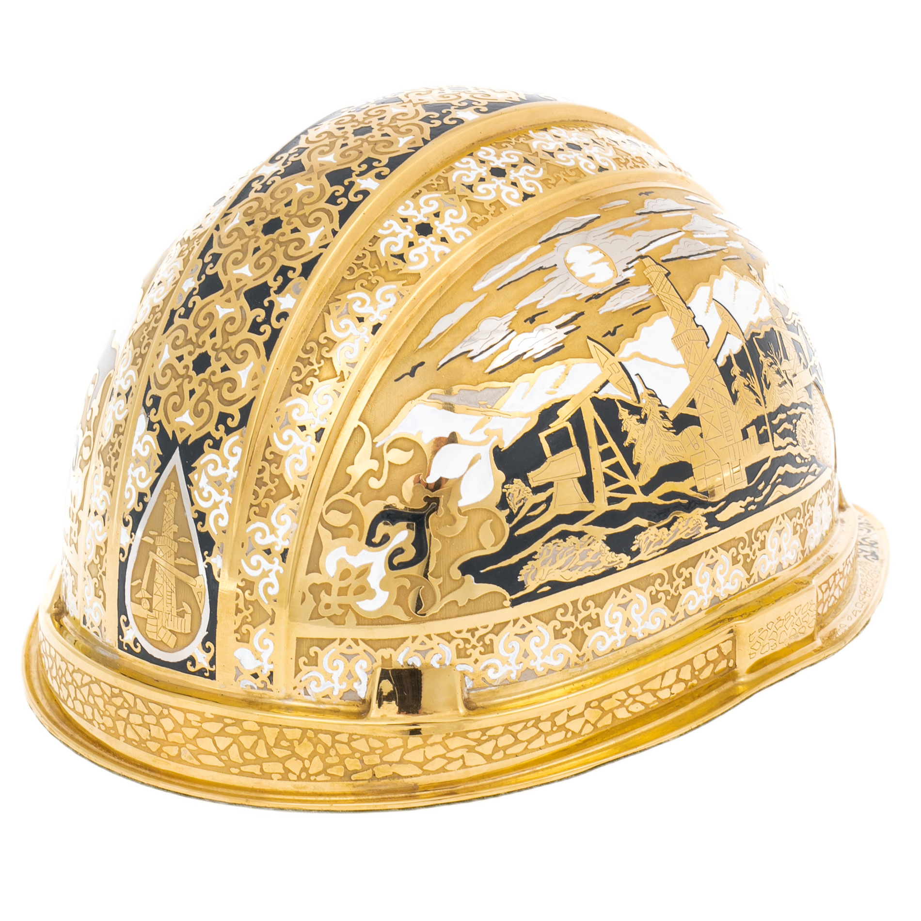 Внутри каска выстлана мягкой кожей золотистого оттенка, что подчеркивает ее статус сувенирного предмета, предназначенного не для эксплуатации, а для демонстрации. Такой подарок уместен в кругу руководителей нефтяных компаний, инвесторов, топ-менеджеров и государственных деятелей, имеющих отношение к отрасли. Это знак признания, респекта и понимания значимости их вклада. Каска воплощает в себе идею силы, труда и ценности природных ресурсов — в обрамлении, достойном президиума.