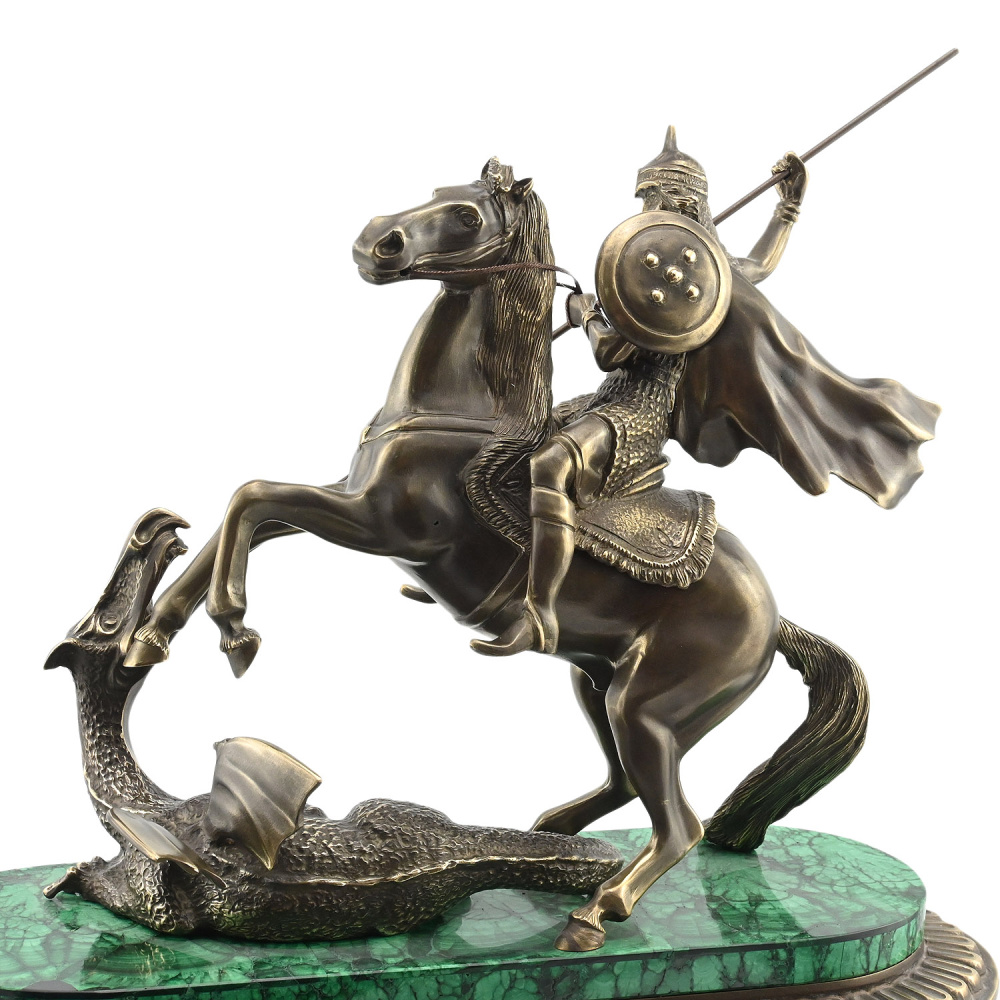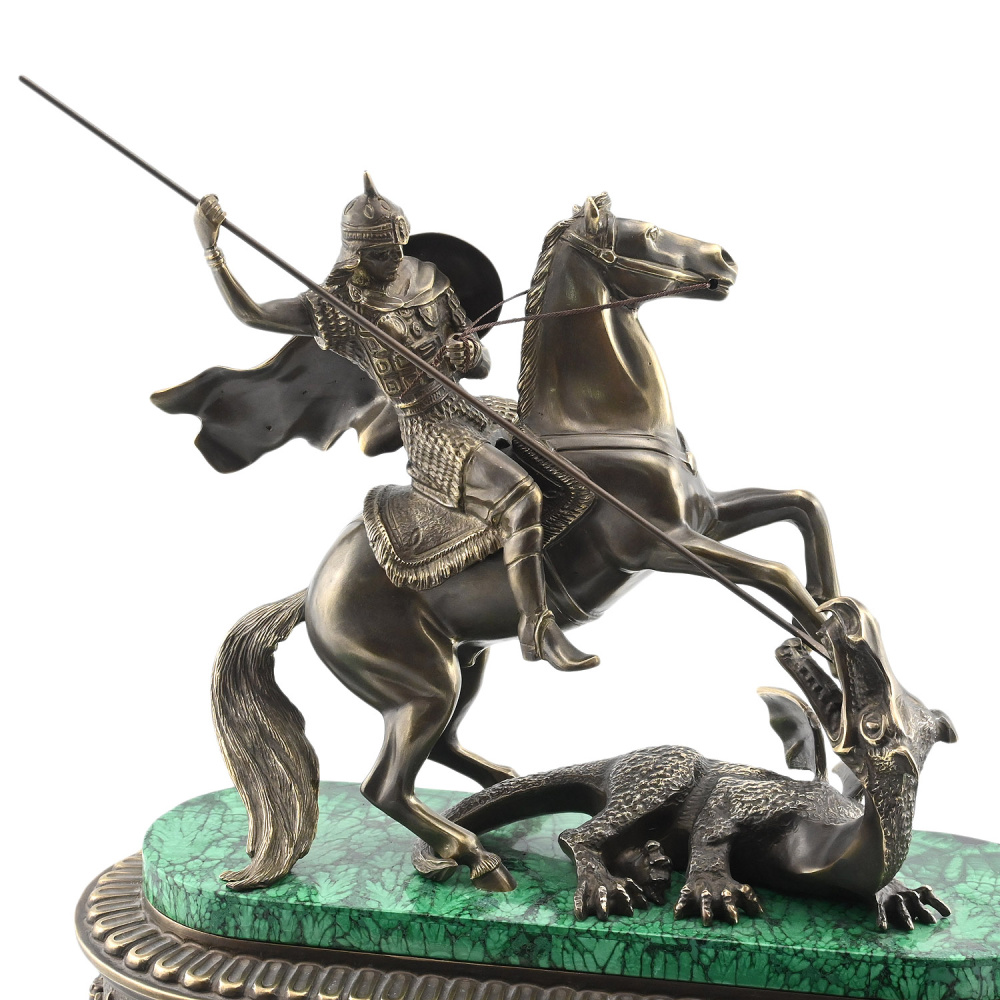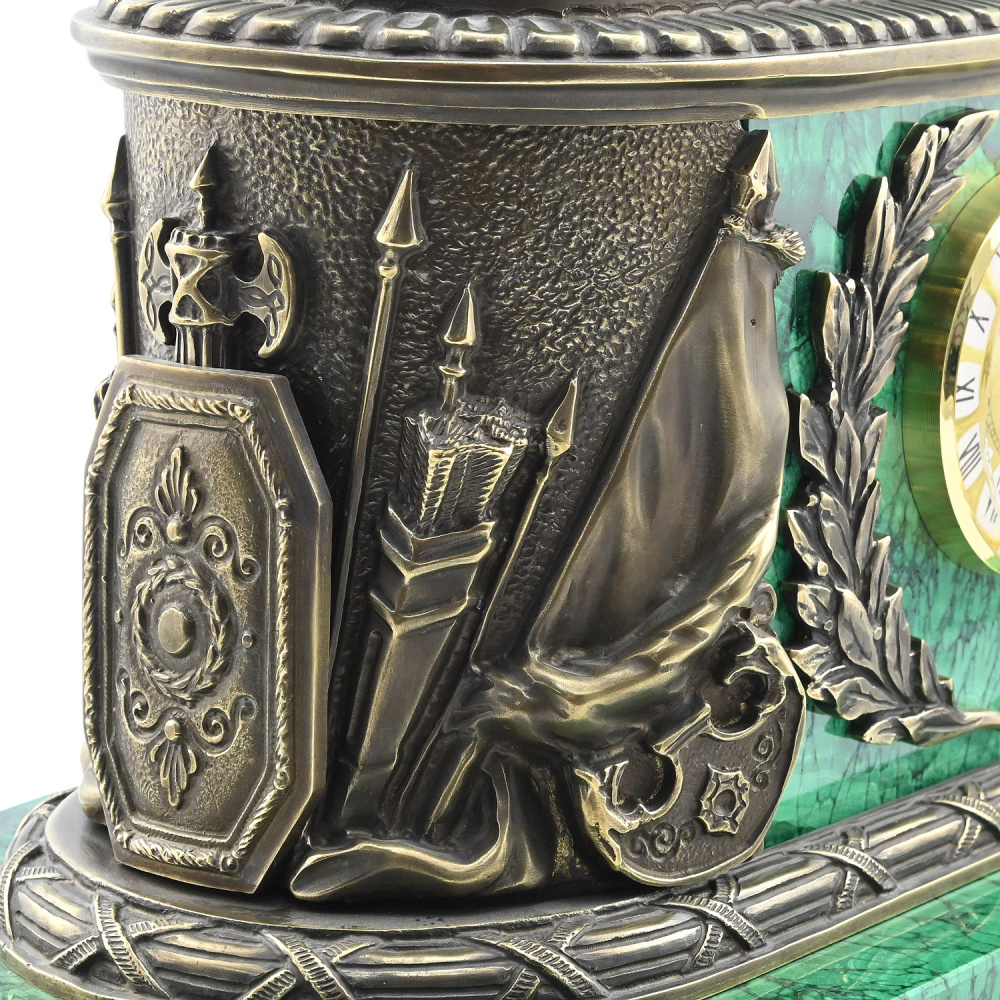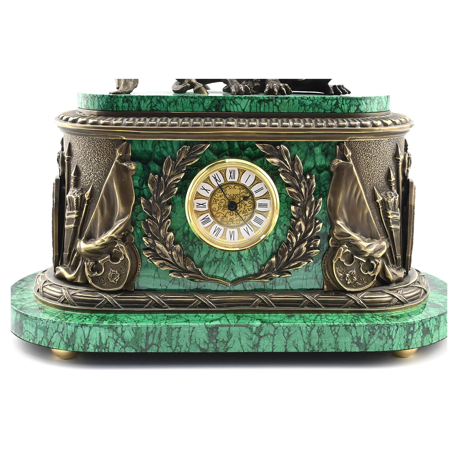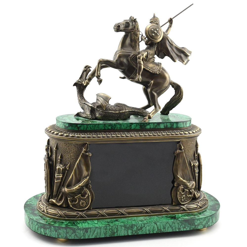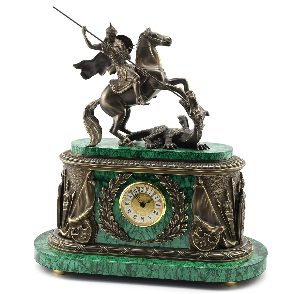 Часы каминные из малахита и бронзы "Георгий Победоносец"