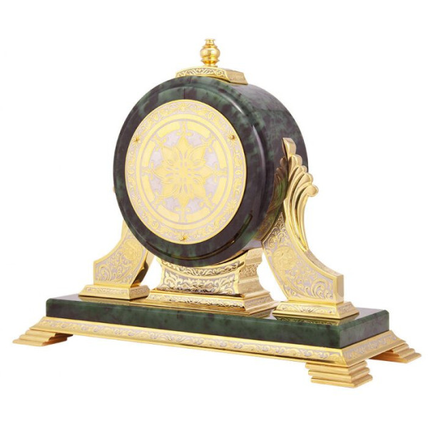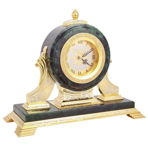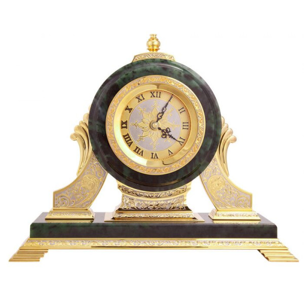 Каминные и настольные часы в стиле Златоуста впишутся в интерьер гостиной, рабочего кабинета или офиса. Главным украшением впечатляющих монолитных часов служит Златоустовская гравюра – образец изящества и красоты. После того, как на полированную поверхность наносится изящный рисунок, изделие сушится в печи и подвергается травлению, после которого узор становится рельефным.