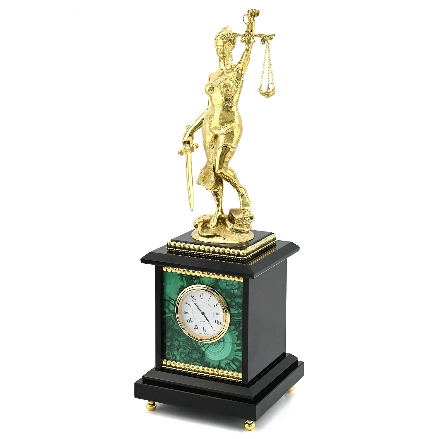 Материал: малахит, долерит, бронза, кварцевый механизм.