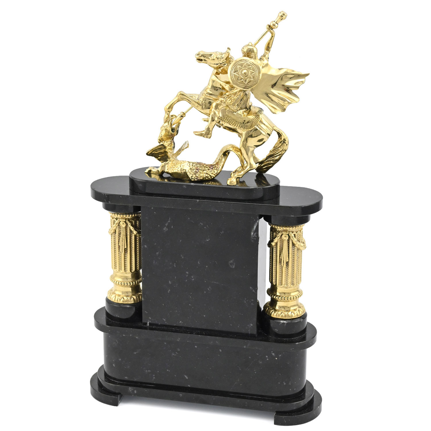 Каминные часы из родонита и долерита "Георгий Победоносец"