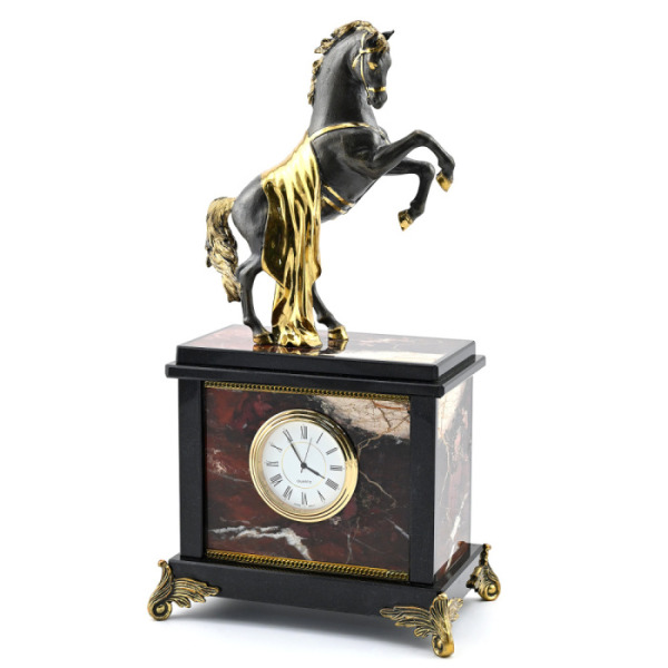 Каминные часы "Базис. Конь с попоной" (яшма, долерит)