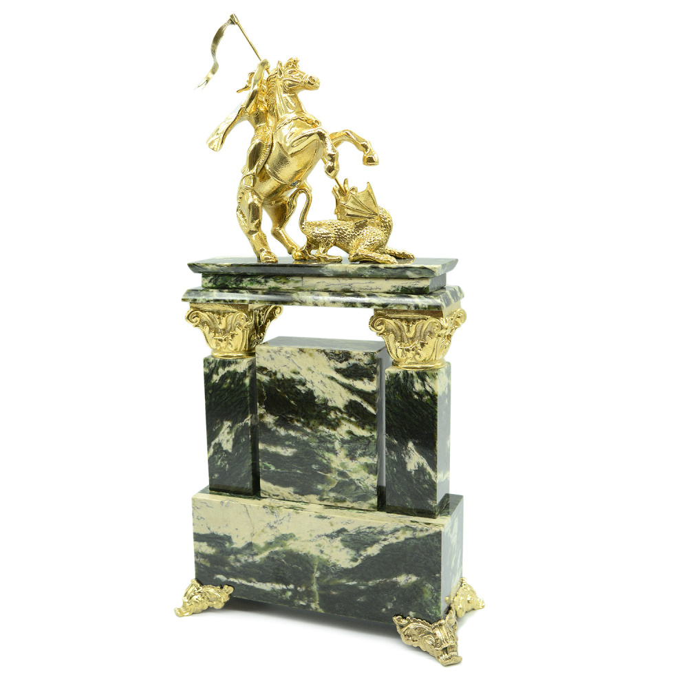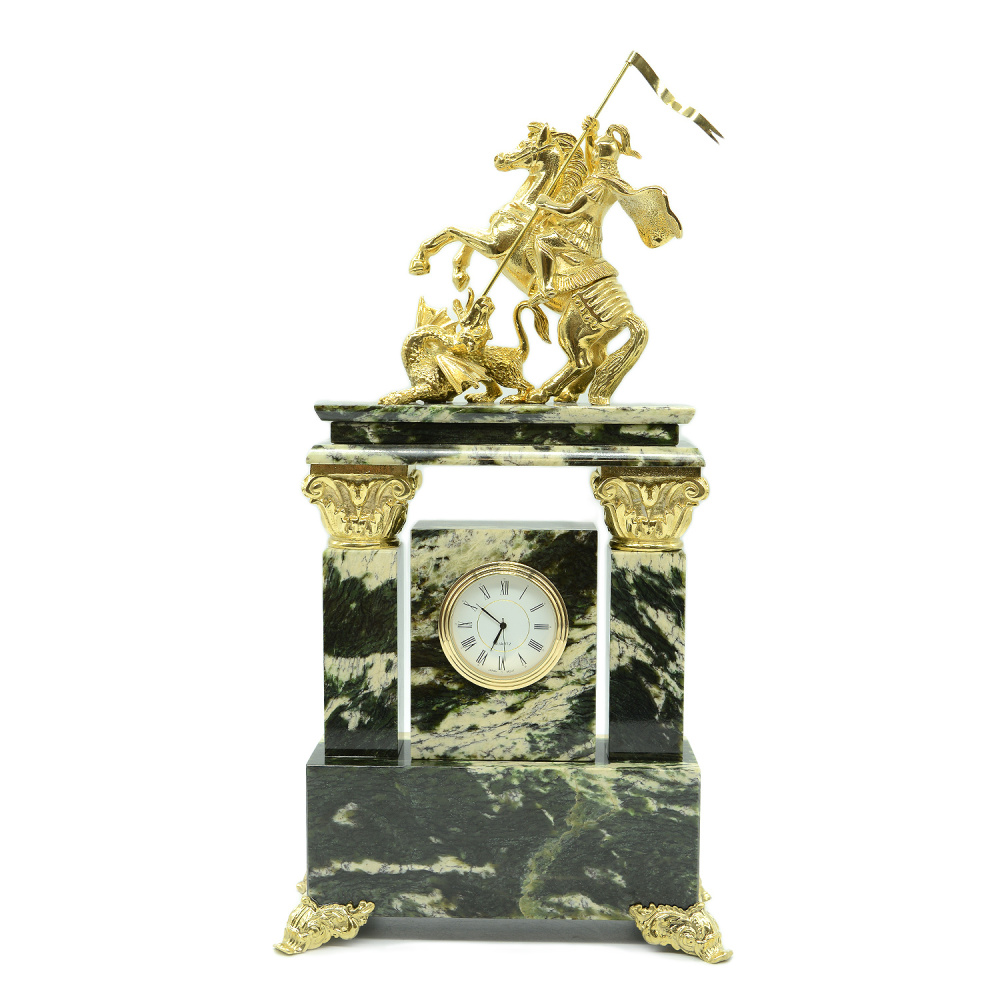 Каминные часы "Капитель. Георгий Победоносец" нефрит