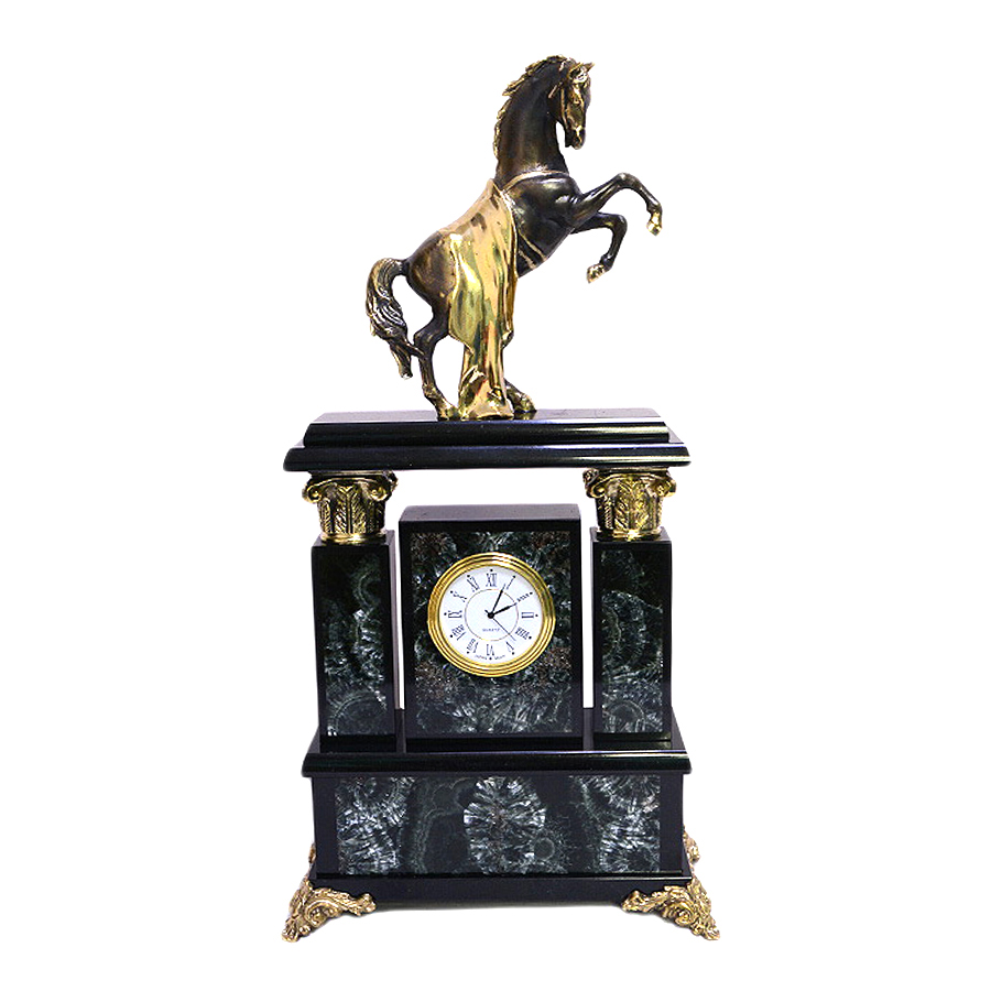 Каминные часы "Капитель. Конь с попоной" (серафинит)