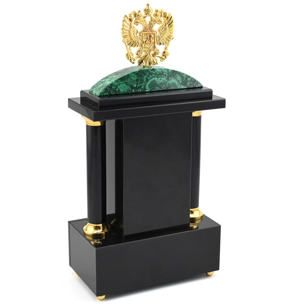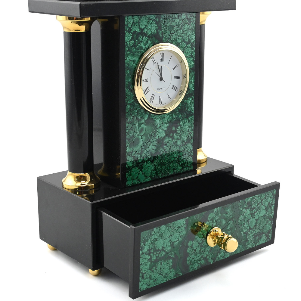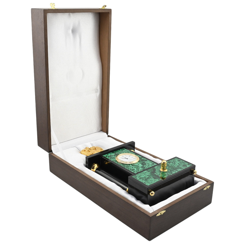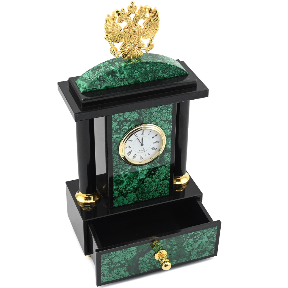 Каминные часы "Герб РФ" с ларцом, малахит