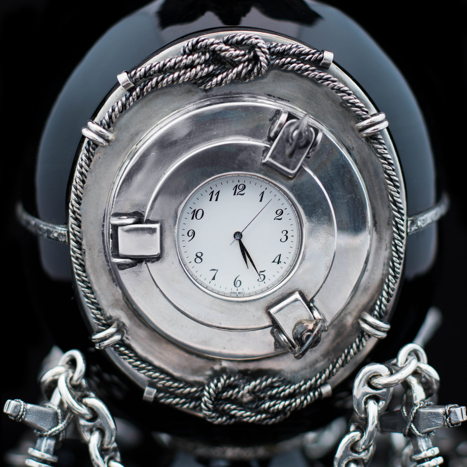 Материал: серебро 925 пр, обсидиан, швейцарский кварцевый механизм.