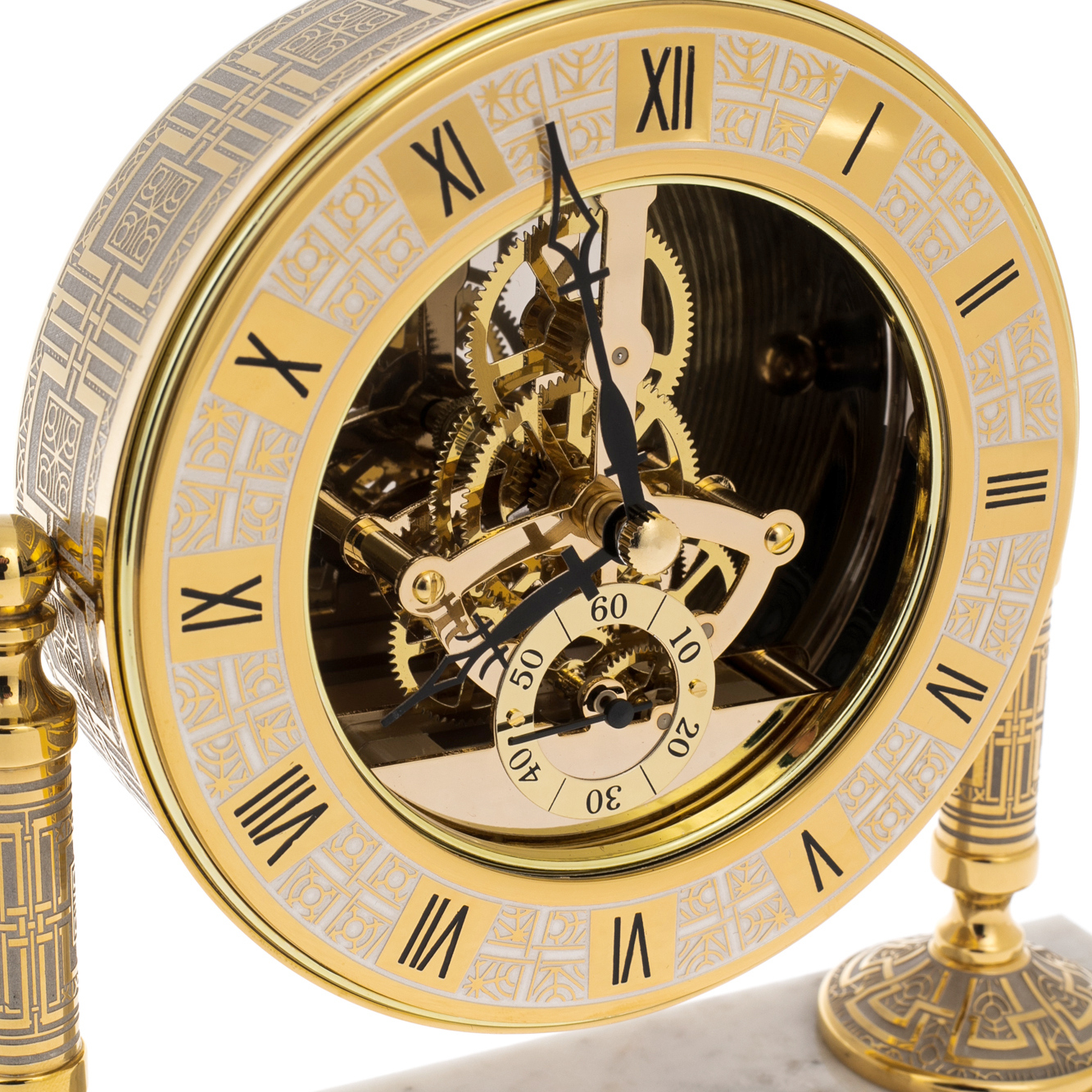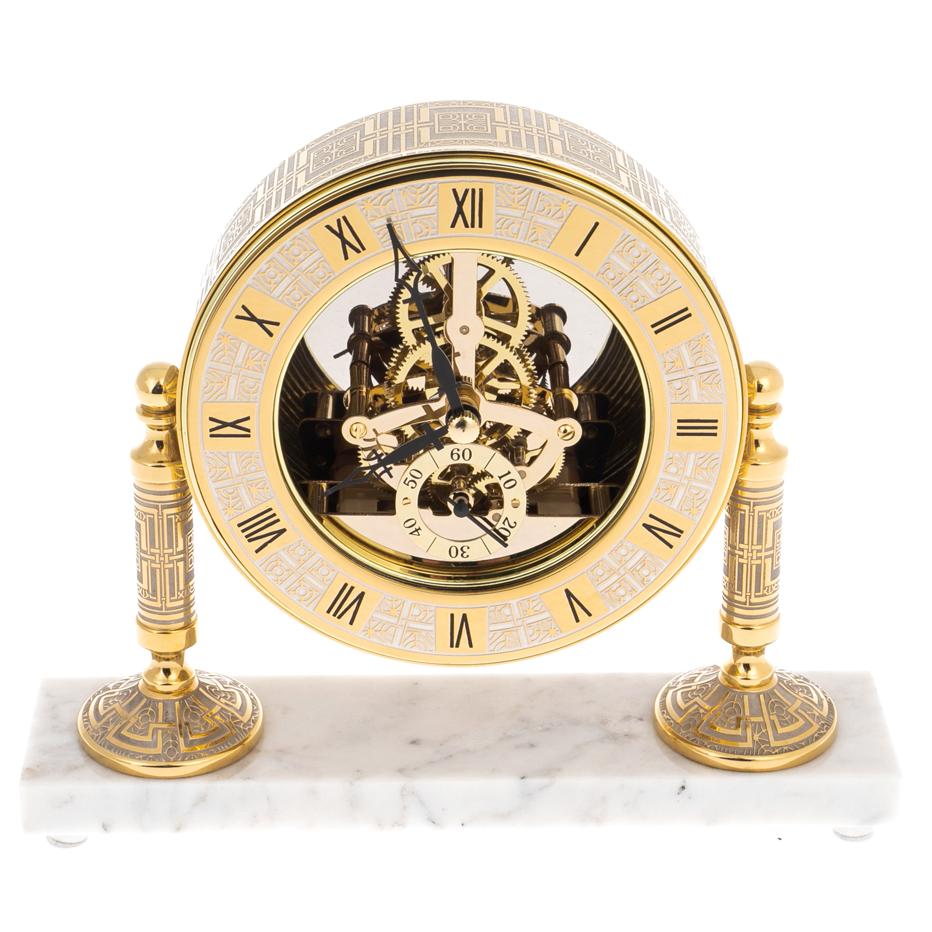 Часы на подставке из мрамора Skeleton — это не просто измеритель времени, а истинный символ статуса, воплощающий в себе гармонию роскоши и утончённого вкуса. Восхитительная мраморная основа, словно произведение искусства, привносит в интерьер нотки вечности, напоминая о величии природы и мастерстве человеческих рук. Каждый изгиб, каждая линия подставки, выполненной с безупречной точностью, вызывает восхищение, создавая ощущение, что время здесь останавливается, чтобы насладиться моментом.