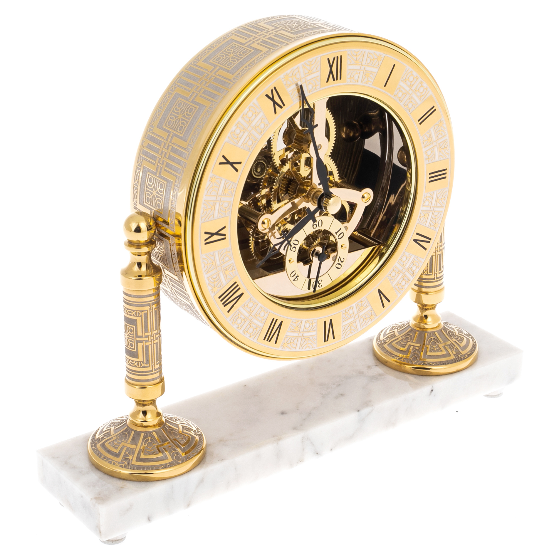 Каждый элемент часов, от мраморной основы до утончённого механизма, продуман до мелочей, создавая гармонию, которая ощущается в каждом взгляде. Эти часы, как верный спутник, не только отслеживают время, но и служат напоминанием о том, что каждая секунда — это возможность создать что-то уникальное, оставить след в этом мире. Они идеально вписываются в любой интерьер, от классического до современного, становясь его изюминкой и гордостью.