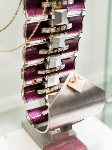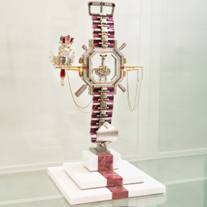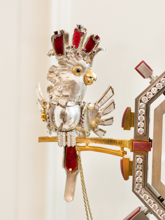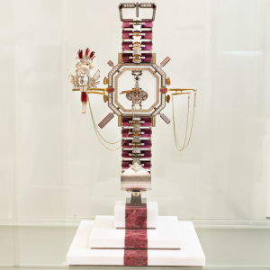 Материалы: серебро, золото, бриллианты, рубины, мрамор, драгоценные камни, гильошированная эмаль.