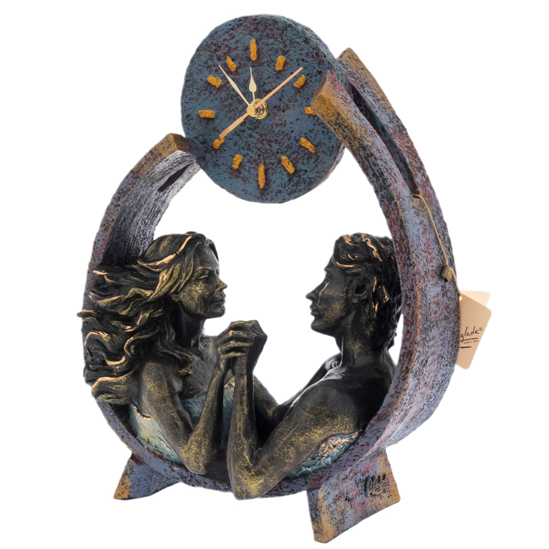 Время – самое драгоценное, что есть у человека, и оно замирает в миге абсолютной гармонии. Эти настольные часы заключают в себе не просто ход стрелок, но ощущение вечности, рожденное в глубоком взгляде, прикосновении, легком движении рук. Композиция, исполненная в бронзе, воплощает танец двух душ, встретившихся среди бескрайнего течения часов и минут. Мужчина и женщина, застывшие в предвечном ожидании или в тихом наслаждении моментом, создают символику, понятную лишь тем, кто знает вкус истинной близости.