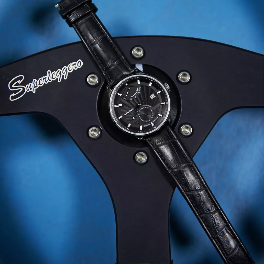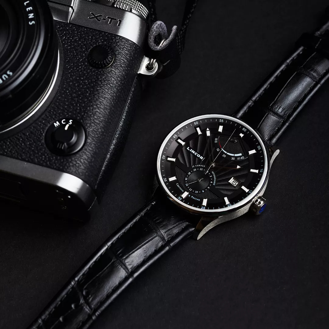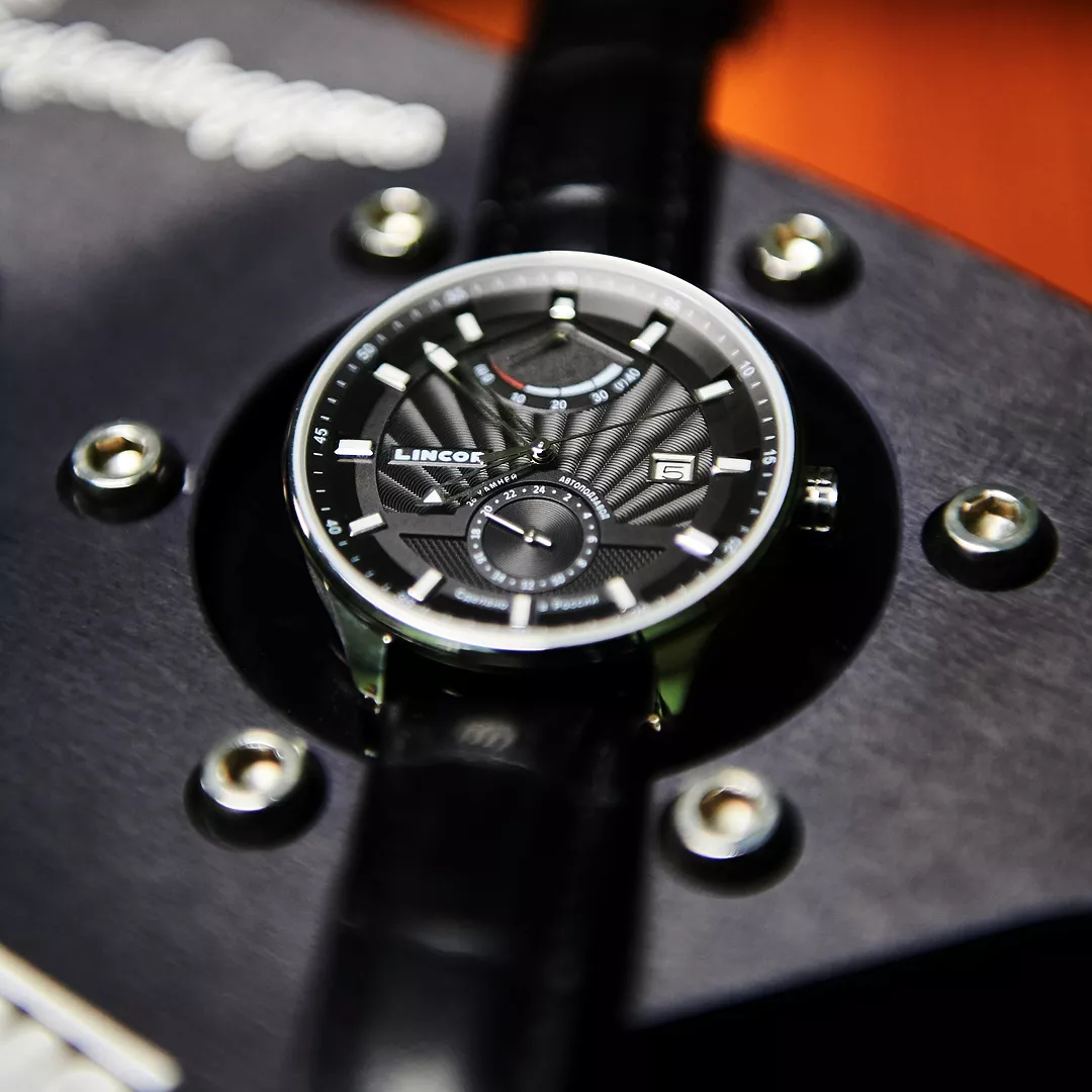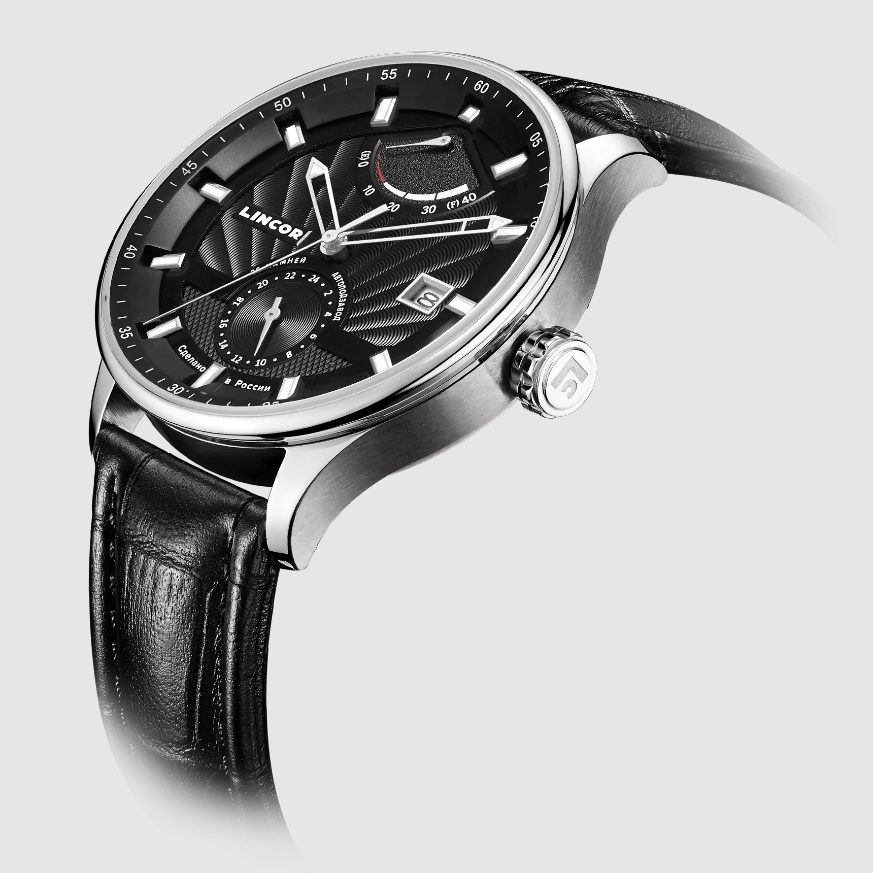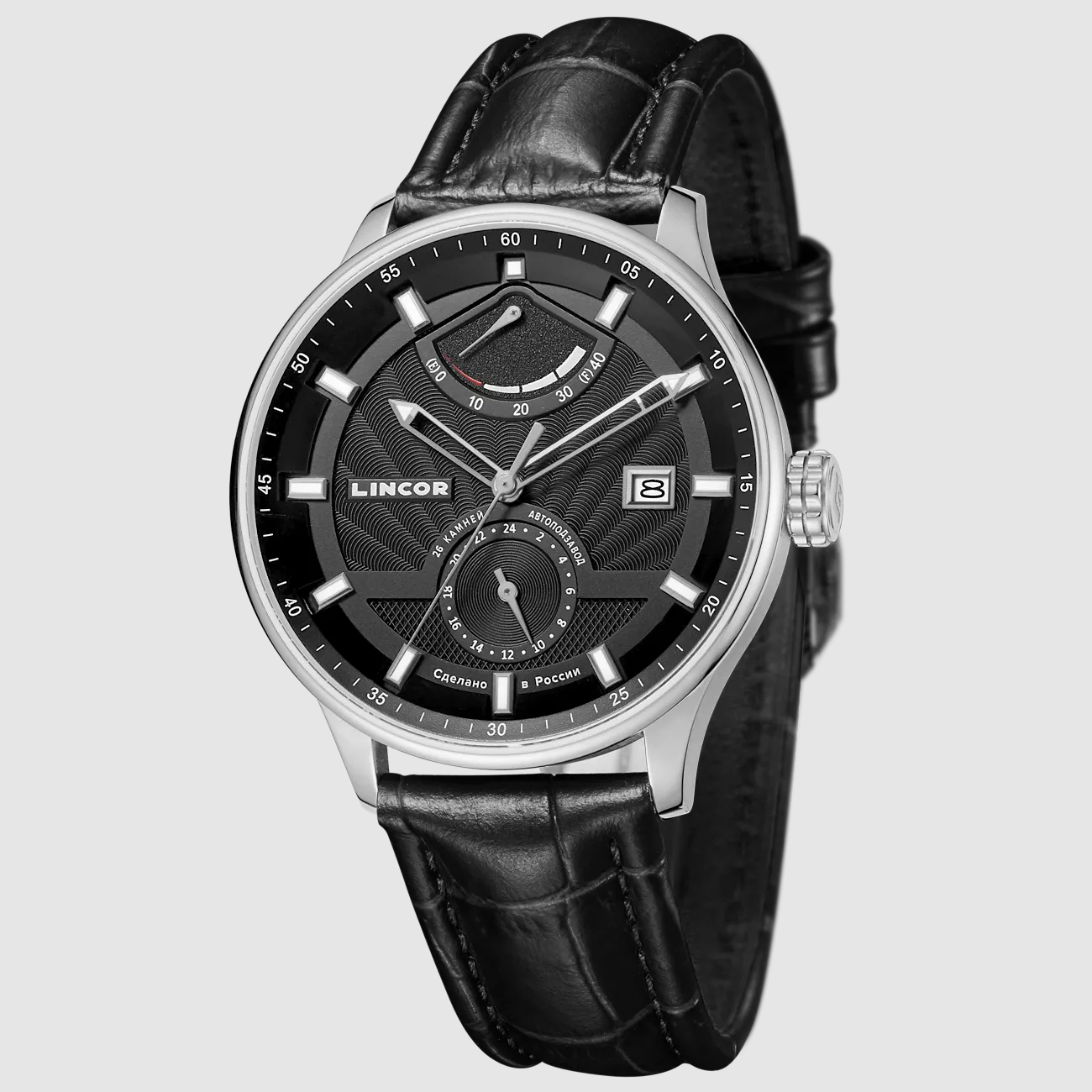 Наручные механические часы с автоподзаводом Lincor черно-серебристые с черным ремешком