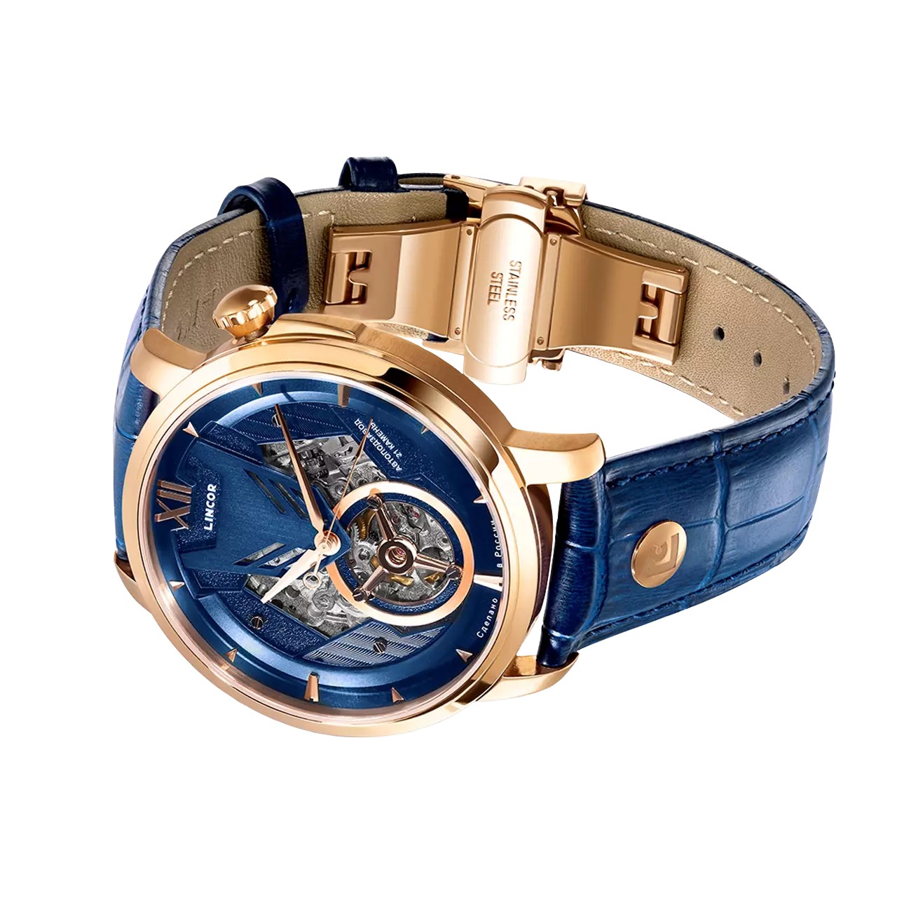 Наручные механические часы с автоподзаводом Lincor UNI 7235 синие