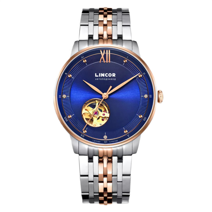 Наручные механические часы с автоподзаводом Lincor UNI синие с серебристым ремешком