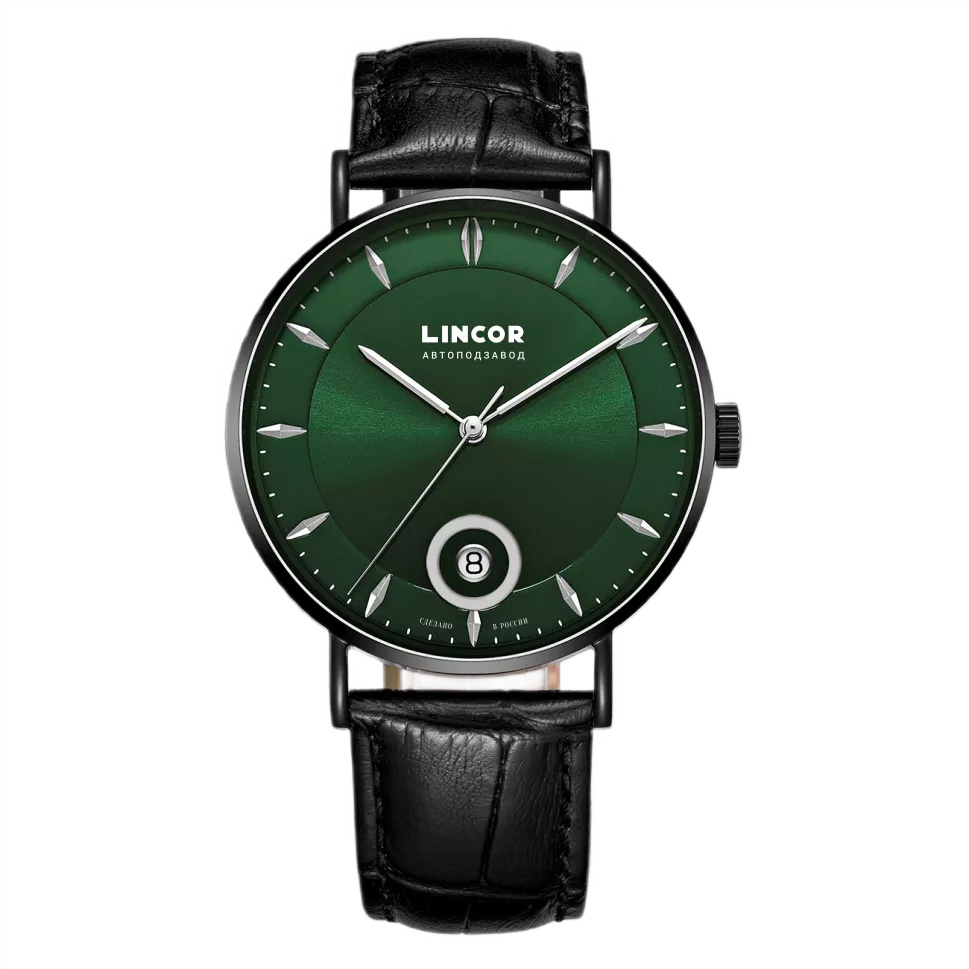 Наручные механические часы с автоподзаводом Lincor UNI зеленые с черным ремешком