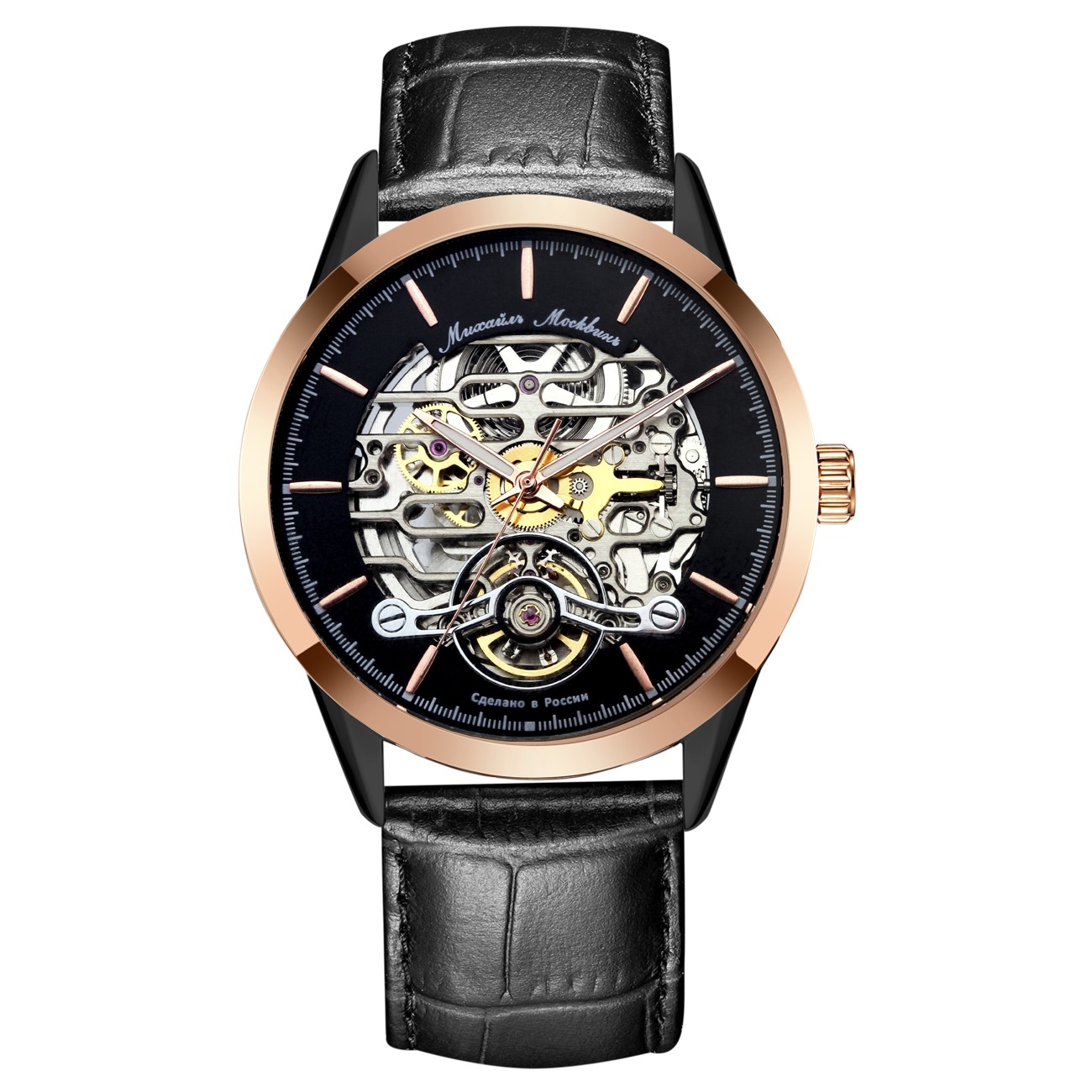Наручные механические часы с автоподзаводом Mikhail Moskvin "Elegance" черно-золотистые с черным ремешком
